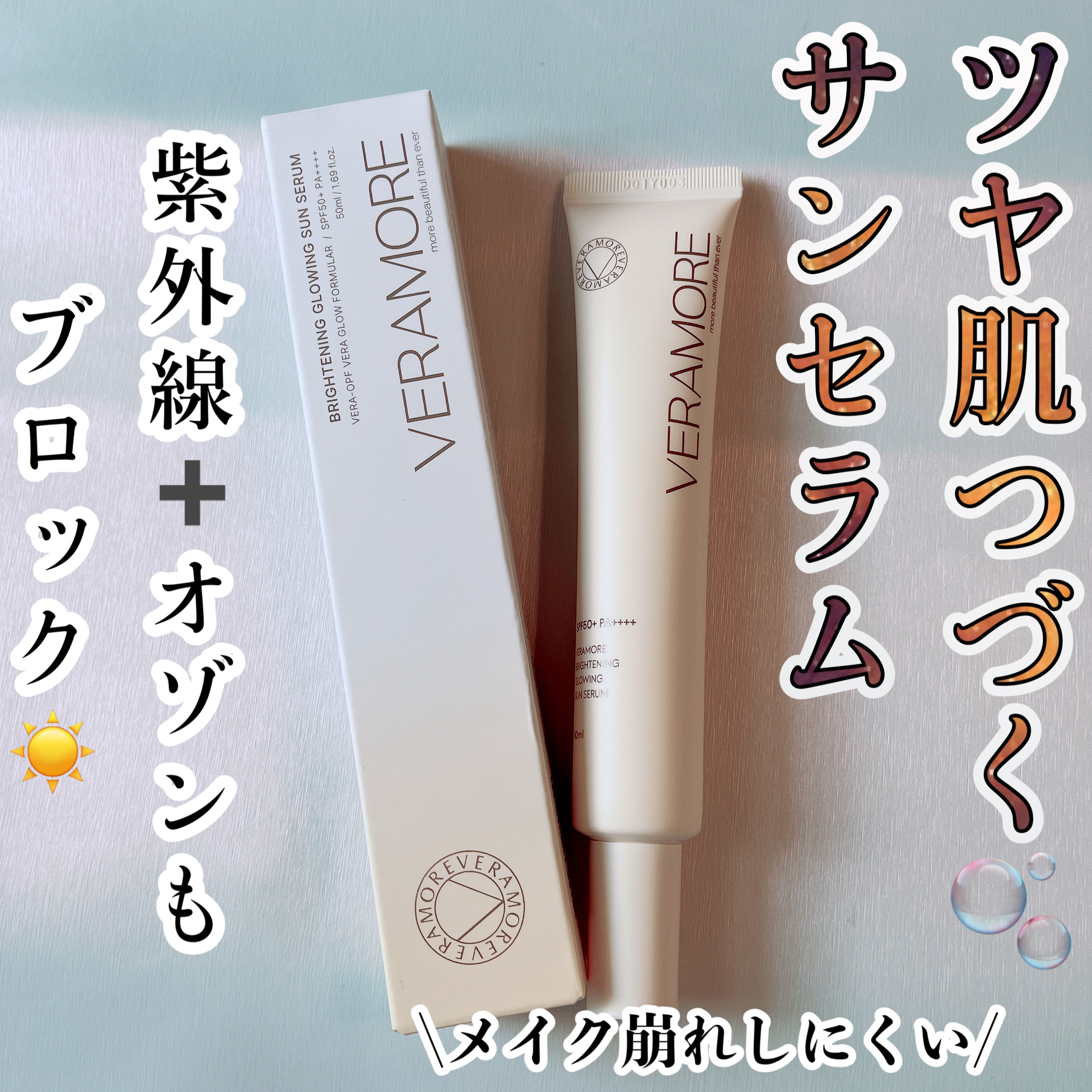 #PR使い切りました。好き🩷な使用感❣️VERAMOREベラモアブライトニング光彩サンセラム 50ml🌟Qoo10サンプルマーケットで初めて当たりました🎀うるツヤサンセラムVERAMORE→初期エイジングケアの新しい基準を定着するプレミアムス...