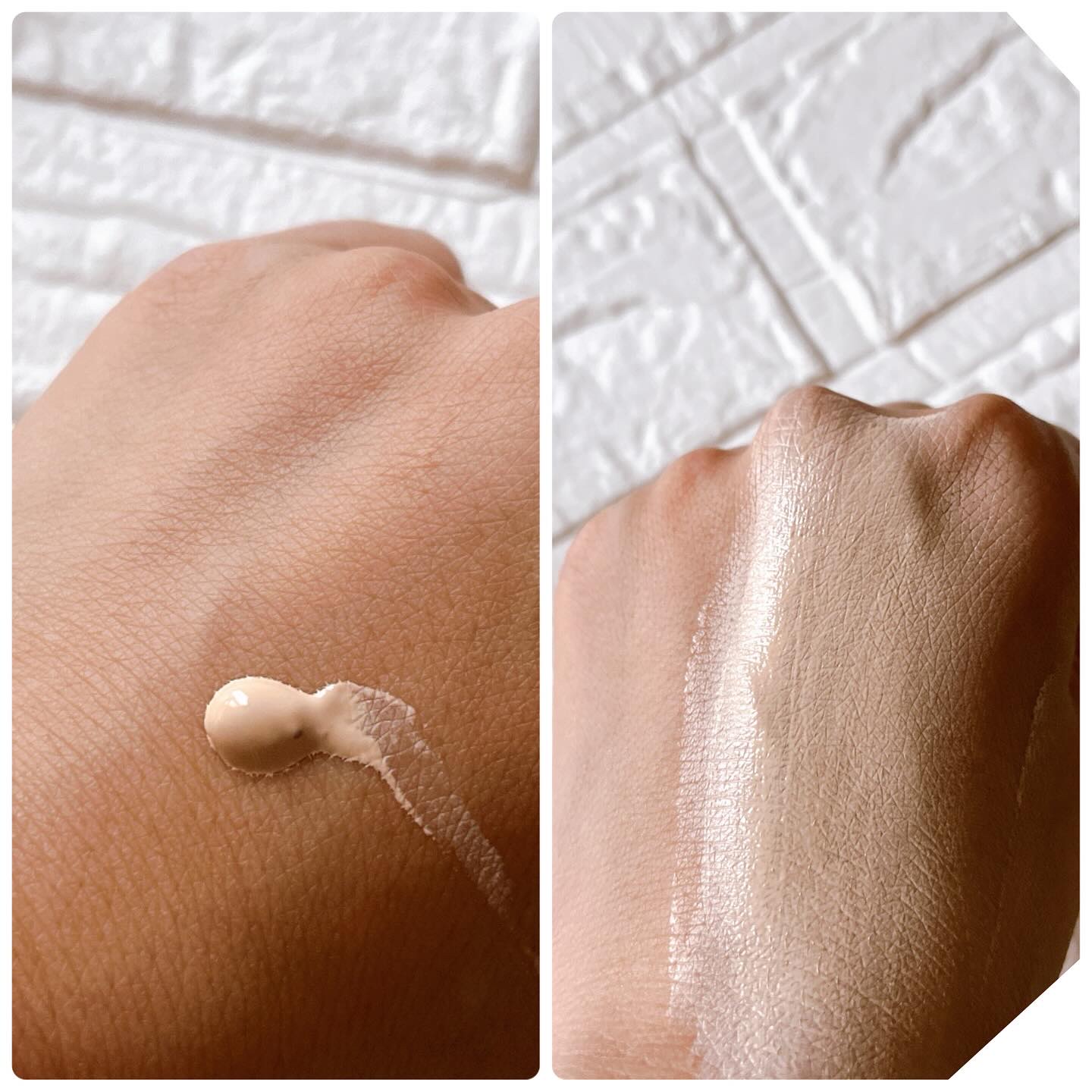 リニューアル前のものも使ったことがあるんですが、こちらの新しいものを使用した感想は、前のものより白浮しにくくて、艶感が加わったように保湿感が前のものよりあるように感じました! 前のものより乾燥しにくかったです。 つけた感じとても水分感が多めで、乾燥しにくいと感じました。 これだけ塗ってもとてもつやがでて、トーンアップされる感じが良かったです👍 艶感あるのにピタッとついてくれてよれにくいところも良いですね!