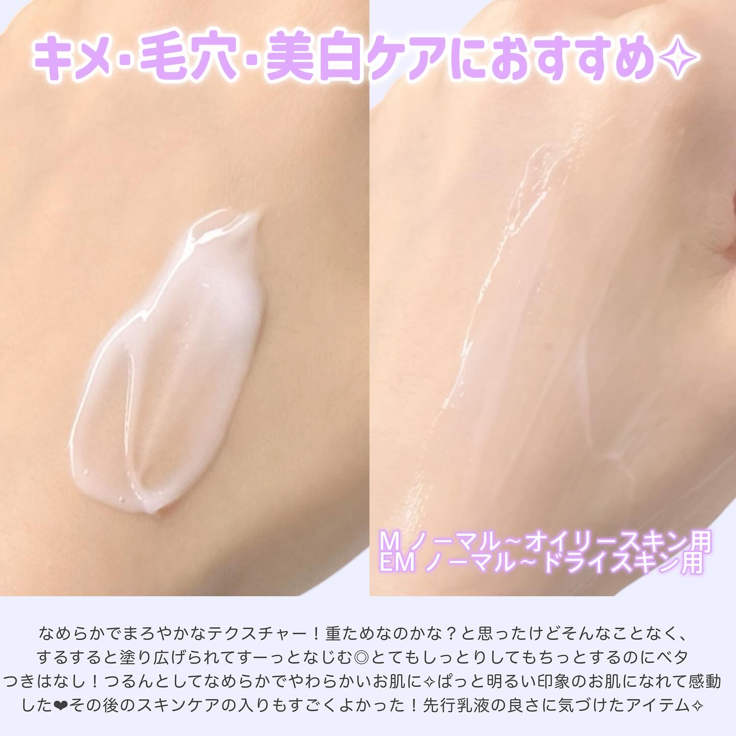 - まろやかなコクのある感触で肌を充実したうるおいで満たし、たちまちクリアな印象の美肌に。 明るく輝く高精細なキメを瞬時につくり、透明感のある弾むような肌へと導く美白乳液です。ノーマル~ドライスキン用。