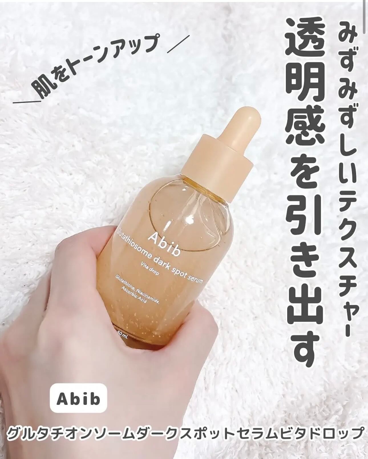 #PR#CosmeLabに参加しましたitem▷#Abib#グルタチオンソームダークスポットセラムビタドロップ美白成分として人気を集めているグルタチオン成分を含んだグルタチオンソームシリーズ。肌のくすみ、しみに集中アプローチして透明感を高め、...