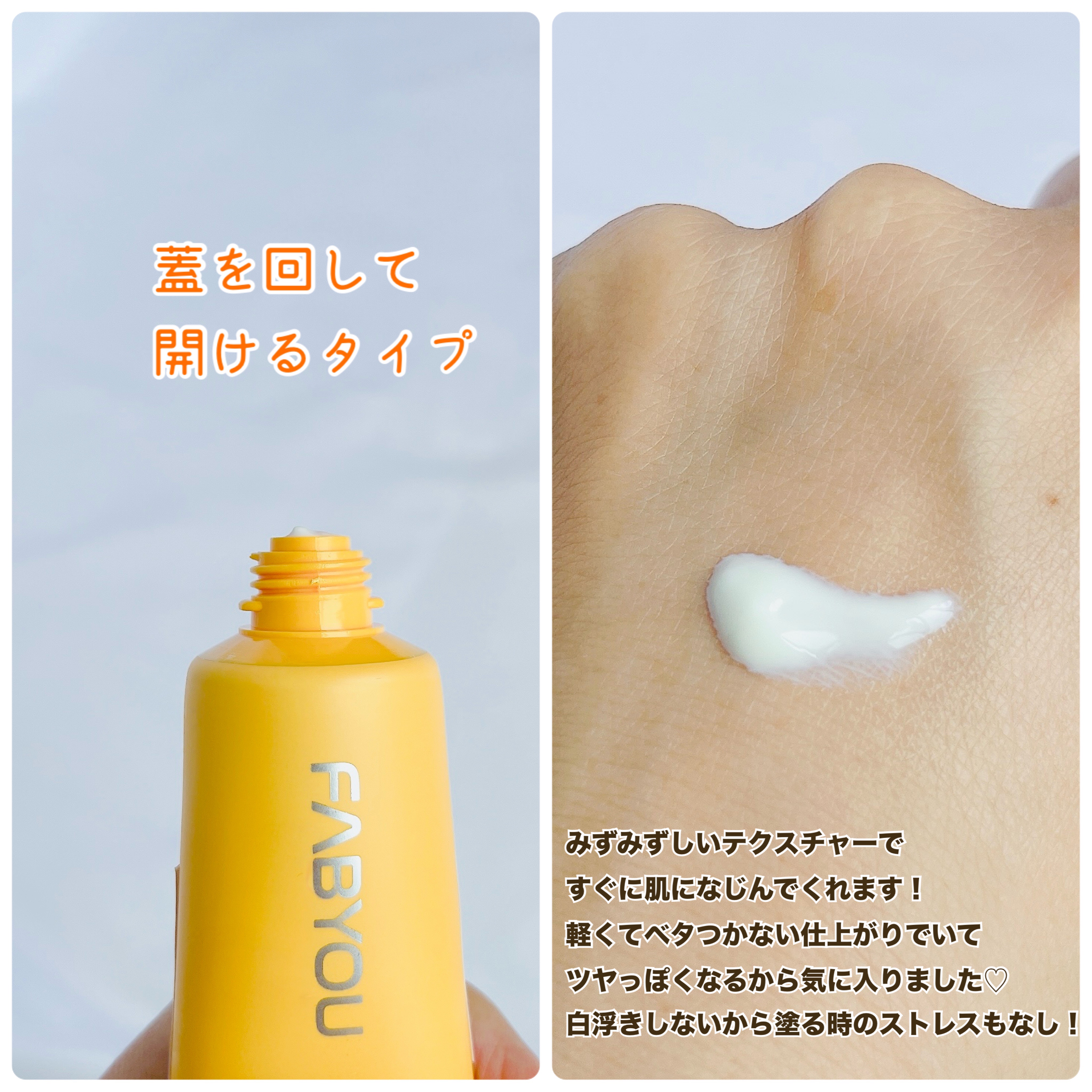 | 日焼け止め・UVケアランキング第10位 | ふわっとした硬めのクリームだけど、 するっと伸びが良く、 なじませているうちに水感を感じ、 なじむとベタつきなく さらっと軽い使い心地だよ。 | 詳細を見る | |