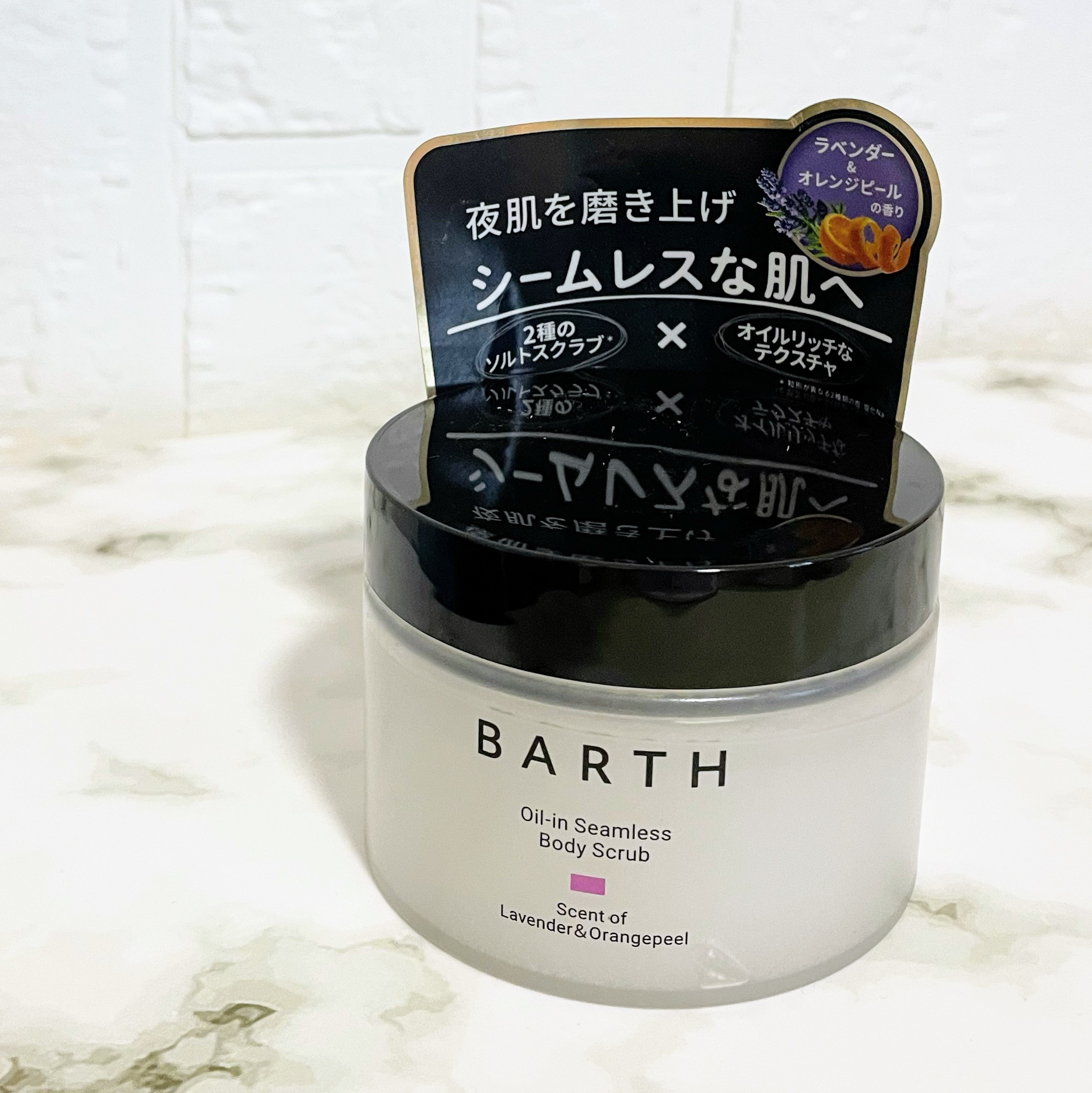 .BARTHオイルインシームレスボディスクラブ ラベンダー&オレンジピール..入浴剤で有名なBARTHから発売された、ナイト美容ボディスクラブ。シンプルでオシャレなパッケージデザインのジャーの中に、サイズの異なる2種のソルト(研磨・スクラブ剤...