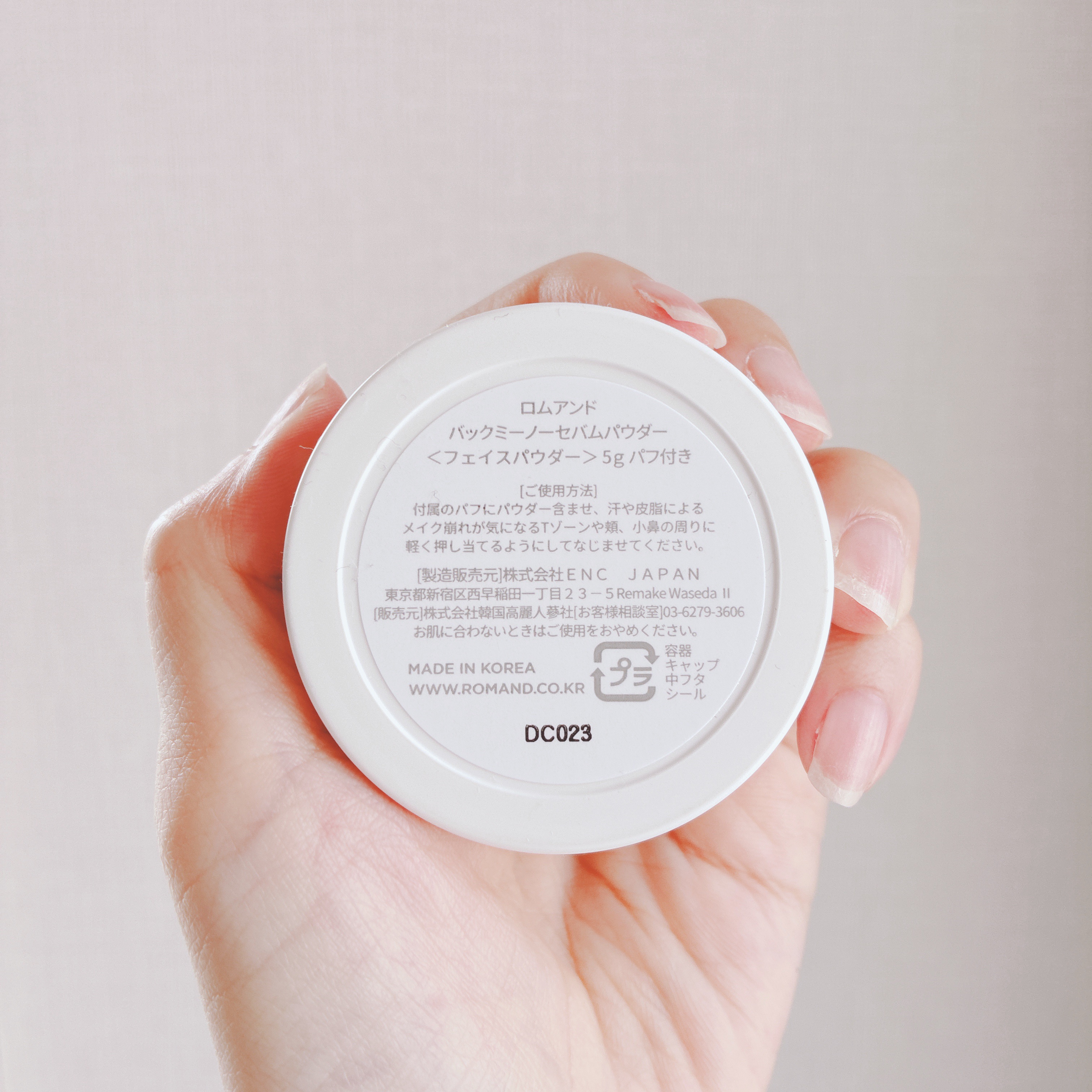 rom&ndロムアンドバックミーノーセバムパウダー5gメガポで購入したものです。サラサラ系のパウダー好きなのでこれもよかったです💗イニスフリーのノーセバムに比べるとイニスフリーの方が粒子が細かくてサラサラ感がある感じがしました。でも微々たる差...