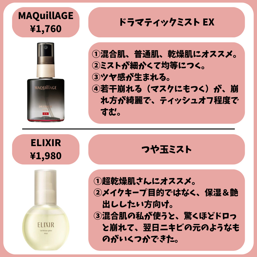 | フィックスミストランキング第1位 | ベースの崩れが皮脂より乾燥からくる人に特にオススメ✨ サラッとというより、しっとりツヤ肌感 | 詳細を見る | |