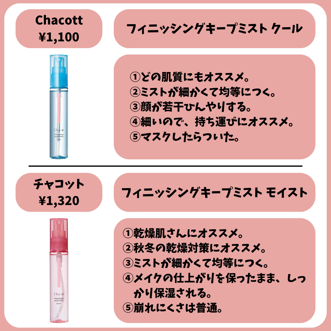 チャコット・コスメティクス フィニッシングキープミスト クール | 1,320円 |