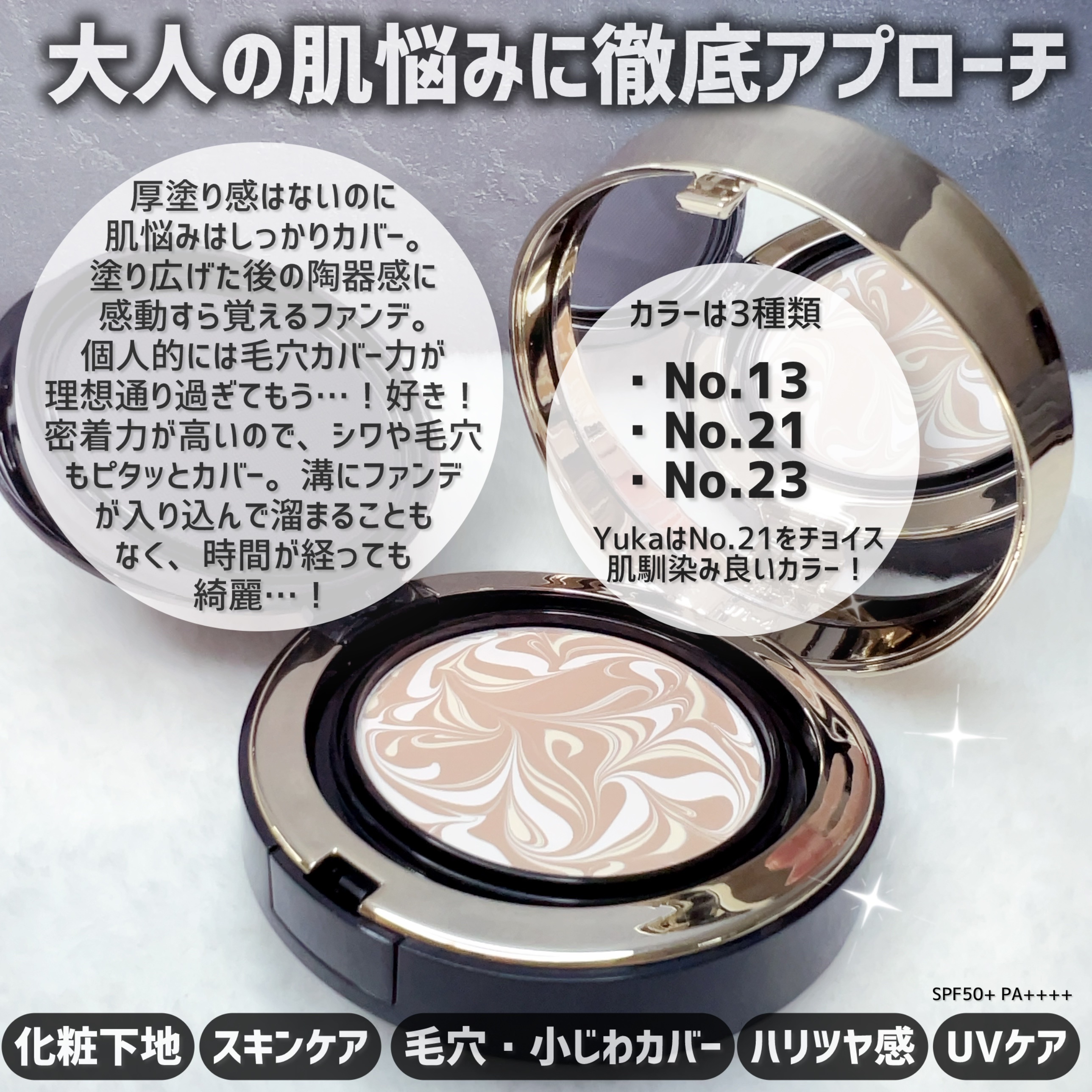 まじで納得の価格だった。 ツヤタイプは、THE・ツヤンツヤン‼︎って感じではなく上品な艶感。 セミマットは、マット‼︎って感じではなく程良い艶感も併せ持った神バランス。 ほんまに…買って良かった。欠点?ないない!ひとつもない! まじで全然ヨレてなかったやべぇえええ! もちろん乾燥もゼロ。 Yukaあるあるの頬の毛穴落ちも、もちろんゼロ。 間違いなく2022年のベスコス決定。 本気でオススメしたいフェイスパウダー。