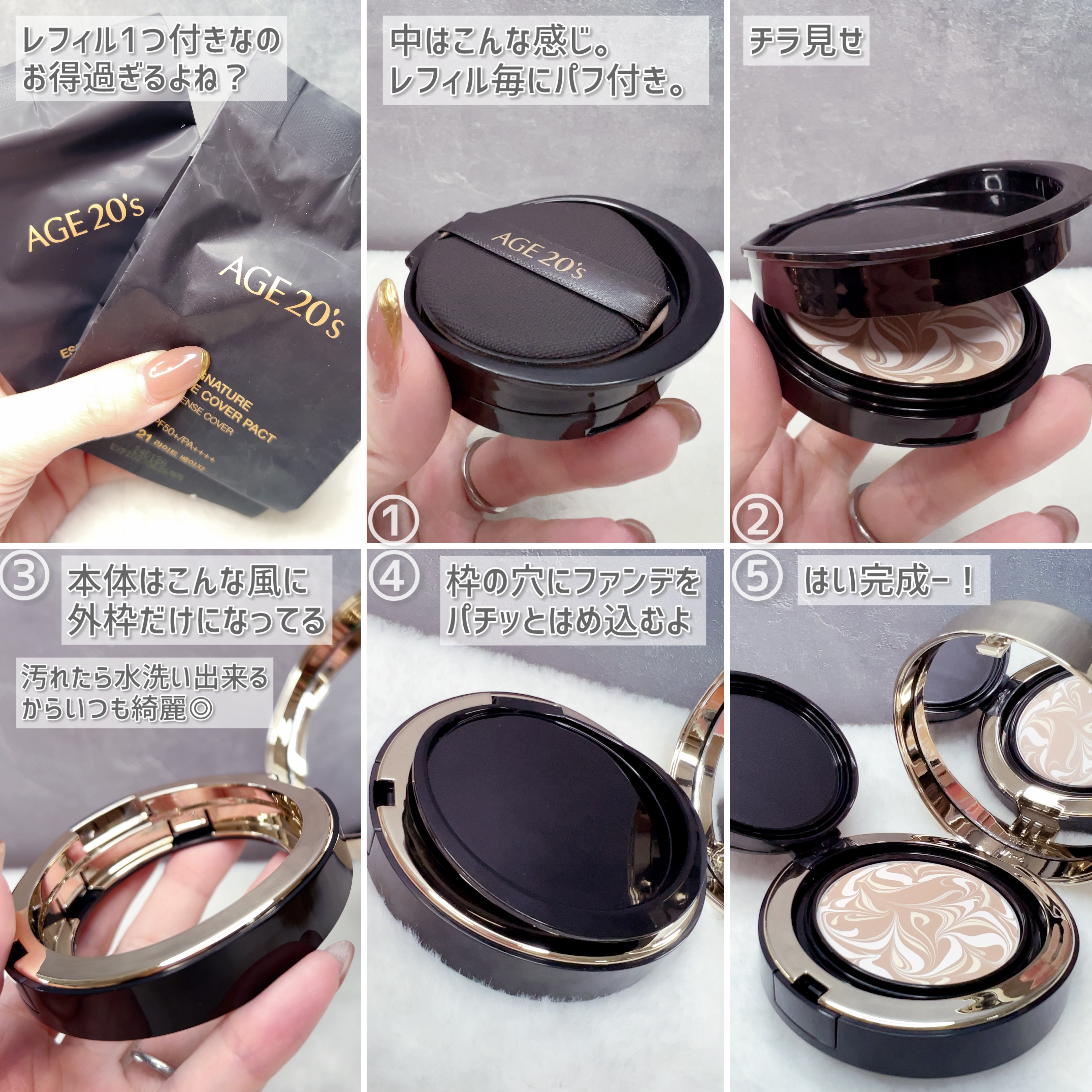 . AGE20'Sシグネチャーエッセンスカバーパクト21号⭐︎イエロー,ホワイト,ベージュのマーブルカラーのクリーム状ファンデ⭐︎美容成分たっぷりだからスキンケアしたみたいにうるうるなベースメイクができちゃう🥳⭐︎UVカットや下地効果はもちろ...