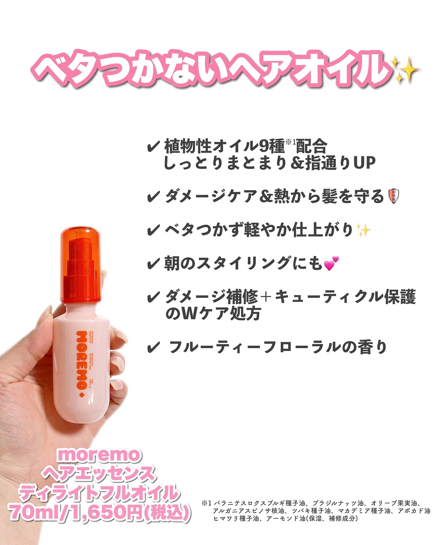 moremo ヘアエッセンスディライトフルオイル 70ml / Hair Essence Delightful Oil 70ml | 2,640円 |