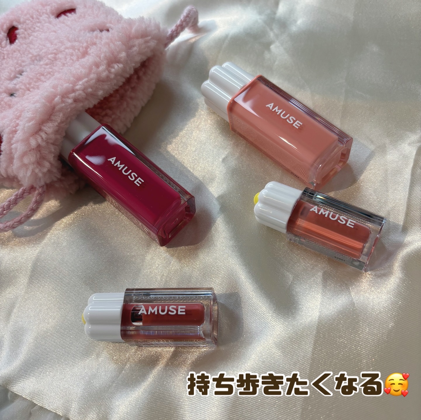 ..AMUSEデューティントウォーターティントティントワンタッチリムーバーお試しさせて頂きました🥰ありがとうございます💕もうもうもうとにかくパケからかわいすぎる🤤使用感も軽めなティントな使い心地で色持ちもしっかりだしうるうるが長持ちするとこが...