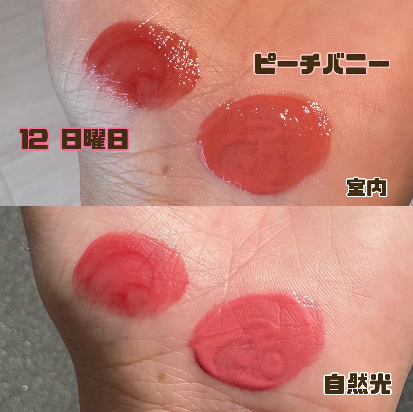 - <01 ラヴィアンコーラル> 精製水、ジフェニルジメチコン、リンゴ酸ジイソステアリル、ビスジグリセリルポリアシルアジペート-2、水添ポリイソブテン、ジグリセリン、セチルPEG/PPG-10/1ダイメチコン、DPG、イソステアリン酸ソルビタン、ポリソルベート60、オクチルドデカノール、ペンチレングリコール、グリセリン、二酸化チタン、セテアレス-20、アクリル酸ヒドロキシエチル/ナトリウムアクリロイルジメチルタウリン酸共重合体フェノキシエタノール、スクアラン、ポリグリセリン-3、香料、ステビオシド、黄色4号、エチルヘキシルグリセリン、赤色227号、トリ(カプリル/カプリン酸)グリセリル、赤色104号(1)、トコフェリルアセテート、黄色5 号、ブリリアントブルーFCF、マンゴー果実エキス、リンゴエキス <06 フィグデュー> 水、ジフェニルジメチコン、リンゴ酸ジイソステアリル、ポリアシルアジピン酸ビス-ジグリセリル-2、水添ポリイソブテン、ジグリセリン、セチルPEG/PPG-10/1ジメチコン、ジプロピレングリコール、イソステアリン酸ソルビタン、ポリソルベート60、オクチルドデカノール、ペンチレングリコール、グリセリン、二酸化チタン(CI) 77891)、セテアレス-20、アクリル酸ヒドロキシエチル/アクリロイルジメチルタウリンナトリウムコポリマー、スクワラン、フェノキシエタノール、ポリグリセリン-3、香料、ステビオシド、赤28(CI 45410)、黄6(CI 15985)、黄5(CI 19140)、エチルヘキシルグリセリン、レッド 33 (CI 17200)、カプリル酸/カプリン酸トリグリセリド、酢酸トコフェロール、ブルー 1 (CI 42090)、Mangifera Indica (マンゴー) 果実エキス、Pyrus Malus (リンゴ) 果実エキス <12 日曜日> 水、ジフェニルジメチコン、リンゴ酸ジイソステアリル、ビスジグリセリルポリアシルアジペート-2、水添ポリイソブテン、ジグリセリン、セチルPEG/PPG-10/1ジメチコン、DPG、イソステアリン酸ソルビタン、ポリソルベート60、オクチルドデカノール、ペンチレングリコール、グリセリン、セテアレス-20、(アクリル酸ヒドロキシエチル/アクリロイルジメチルタウリンNa)コポリマー、フェノキシエタノール、スクワラン、ポリグリセリン-3、ステビオシド、香料、エチルヘキシルグリセリン、トリ(カプリル酸/カプリン酸)グリセリル、酢酸トコフェロール、マンゴー果実エキス、リンゴ果実エキス、酸化チタン、酸化鉄、黄4、赤227、赤104(1)、黄5、青1 <【旧】02 漢江ブリーズ> 水、ジフェニルジメチコン、リンゴ酸ジイソステアリル、ポリアシルアジピン酸ビス-ジグリセリル-2、水添ポリイソブテン、ジグリセリン、セチルPEG/PPG-10/1ジメチコン、ジプロピレングリコール、イソステアリン酸ソルビタン、ポリソルベート60、オクチルドデカノール、ペンチレングリコール、グリセリン、二酸化チタン(CI) 77891)、セテアレス-20、アクリル酸ヒドロキシエチル/アクリロイルジメチルタウリンナトリウムコポリマー、フェノキシエタノール、スクワラン、イエロー6 (CI 15985)、ポリグリセリン-3、香料、ステビオシド、エチルヘキシルグリセリン、レッド33 (CI 17200)、レッド28 (CI 45410)、トリカプリル/カプリン酸グリセリド、酢酸トコフェロール、ブルー 1 (CI 42090)、Mangifera Indica (マンゴー) 果実エキス、Pyrus Malus (リンゴ) 果実エキス <【旧】05 ヒップジロー> 水、ジフェニルジメチコン、リンゴ酸ジイソステアリル、ポリアシルアジピン酸ビス-ジグリセリル-2、水添ポリイソブテン、ジグリセリン、セチルPEG/PPG-10/1ジメチコン、ジプロピレングリコール、イソステアリン酸ソルビタン、ポリソルベート60、オクチルドデカノール、ペンチレングリコール、グリセリン、二酸化チタン(CI) 77891)、セテアレス-20、アクリル酸ヒドロキシエチル/アクリロイルジメチルタウリンナトリウムコポリマー、スクワラン、フェノキシエタノール、イエロー6 (CI 15985)、ポリグリセリン-3、香料、ステビオシド、エチルヘキシルグリセリン、レッド33 (CI 17200)、カプリル酸/カプリン酸トリグリセリド、酢酸トコフェロール、ブルー 1 (CI 42090)、Mangifera Indica (マンゴー) 果実エキス、Pyrus Malus (リンゴ) 果実エキス <【旧】09 ソウル ソウル> 水、ジフェニルジメチコン、マレートジソステアル、ビスジグリセリルポリシルダイピン-2、水素化ポリイソブテン、ディグリセリン、セチルペグ/PPG-10/1ジメチコン、ジップロピレングリコール、ソルビトン等酸塩、ポリソルベ酸60、オクティロドデドカン、ペンシェルン、ペントリン酸塩、ペントリ酸塩、ペンシュレン 二酸化チタン (CI 77891)、アクリル酸ヒドロキシエチル/アクリロイルジメチルタウリン酸ナトリウムコポリマー、フェノキシエタノール、スクワラン、イエロー6 (CI 15985)、ポリグリセリン-3、香料、ステビオシド、エチルヘキシルグリセリン、レッド33 (CI 17200)、カプリル酸/カプリン酸トリグリセリド、酢酸トコフェロール、ブルー 1 (CI 42090)、Mangifera Indica (マンゴー) 果実エキス、Pyrus Malus (リンゴ) 果実エキス <【旧】10 朝イチジク> 水、ジフェニルジメ