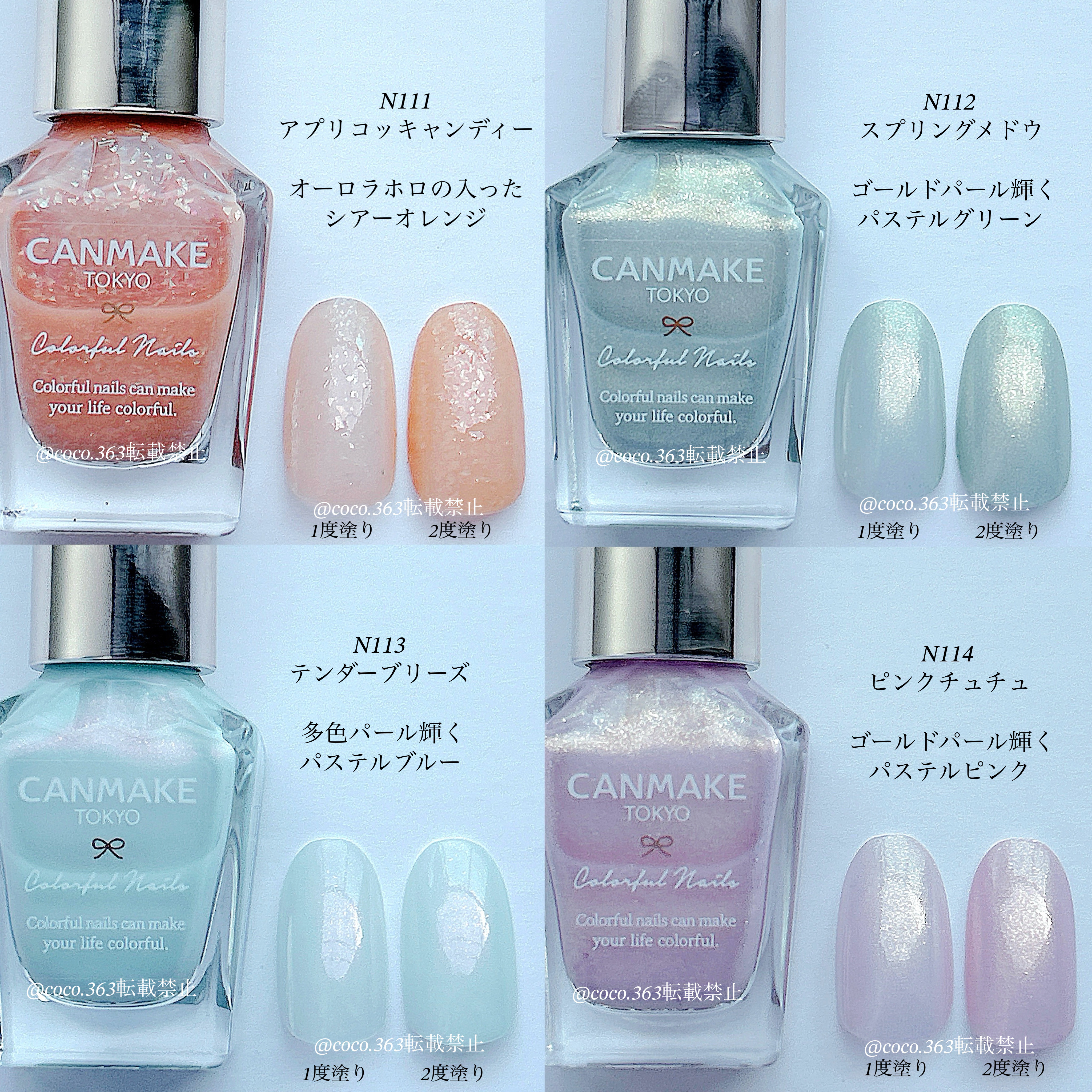 \簡単アレンジも紹介/キャンメイク限定色レビュー🩷今回の限定色は淡色ふんわりパールカラー✨N111アプリコットキャンディーN112スプリングメドウN113テンダーブリーズN114ピンクチュチュ微細パールがキラキラして大人可愛いカラーです🥰境目...