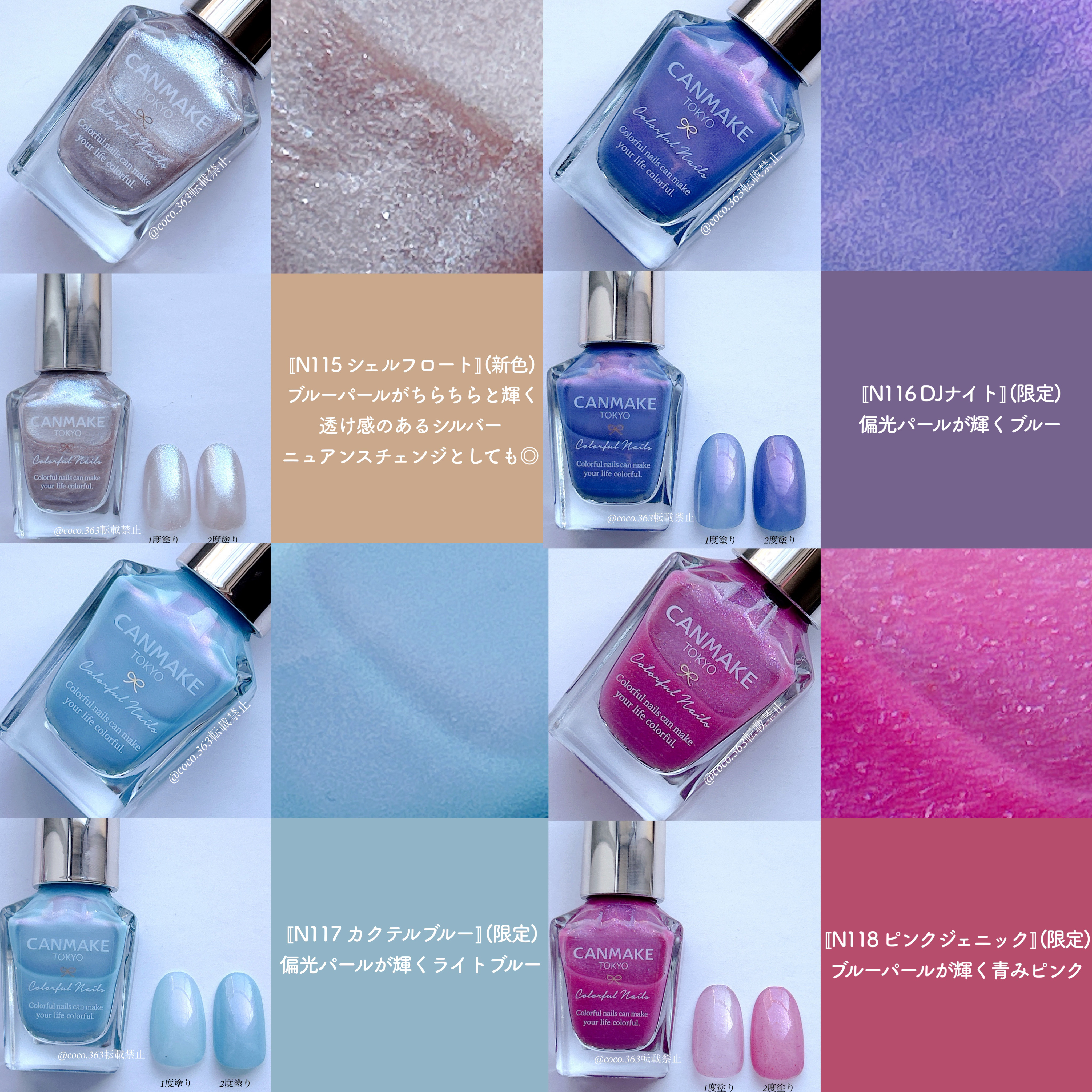 N28 スモーキーアクア N44 シックグレー N52 マーメイドスケール N57 インディゴブルー N82 クラウドレススカイ N85 9PMは以前の限定ですが amazon等のECサイトで 定価で購入できるので 気になる方はぜひ🫶🏻