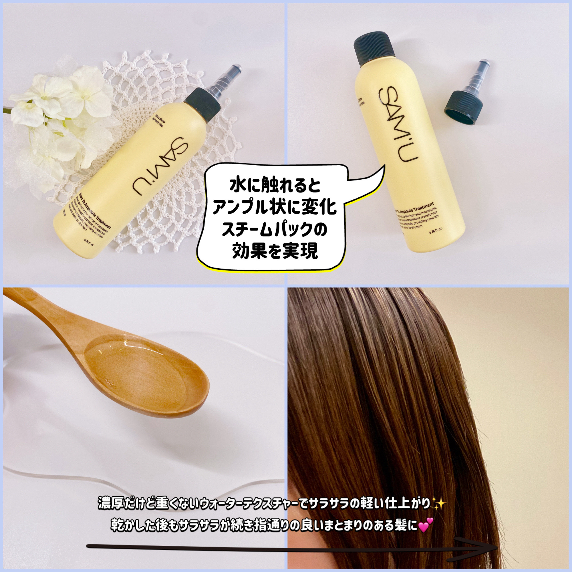SAM'USAM'Uに!?フルバブリングスカルプシャンプーウォータートゥーアンプルトリートメント興味津々で使ってみました🥰♡フルバブリングスカルプシャンプー濃密テクスチャーの泡が髪と頭皮にたっぷりの栄養を与えてくれる(抜け毛ケア)ウッディ系の...
