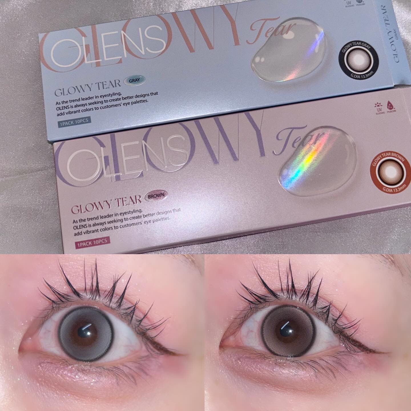 \OLENS💖ダブルハイライターデザイン🥺🥺🥺/☁️OLENS⭐️GlowyTear🛒GRAY/BROWN📍DIA:14.2mm/BC:8.6mm/着色直径:13.3mm涙のように透き通った極微細のダブルハイライターパターンでうるうるとした目...
