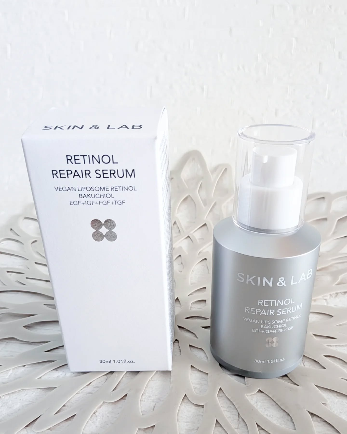 \高機能低刺激なレチノールセラム🩶/skin&lab⭐️効果は最大限に発揮し、刺激は最小限に抑えたレチノールセラム🍋ヴィーガン成分でリポソームすることで、レチノールなのに低刺激に!EGF+IGF+FGF+TGFのペプチド4種類など贅沢成分配...