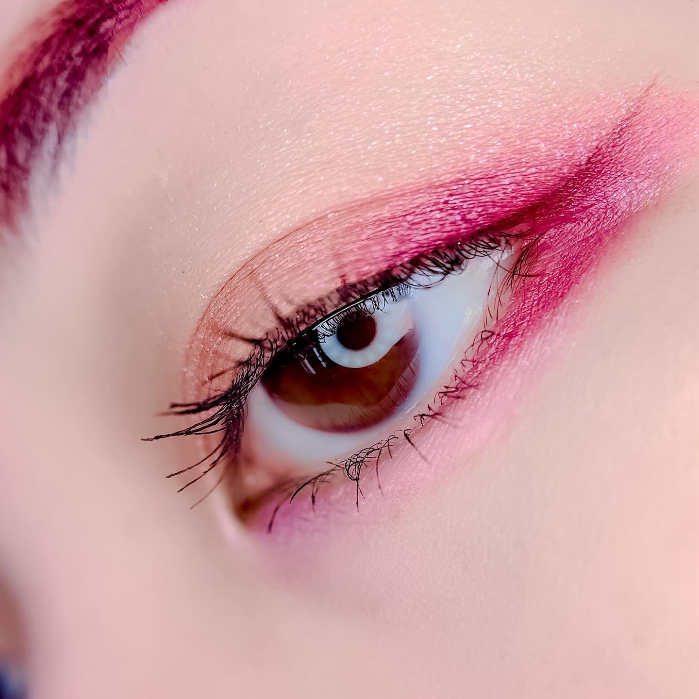ピンクにグレージュも良いですね👌💗 今日は可愛らしい感じにしてみました💕 上下瞼黒目〜目頭側にラメを塗ってキラキラさせております🤩 目尻はマットのピンクを濃いめに重ねて💗 グレージュのアイライナーと相性◎