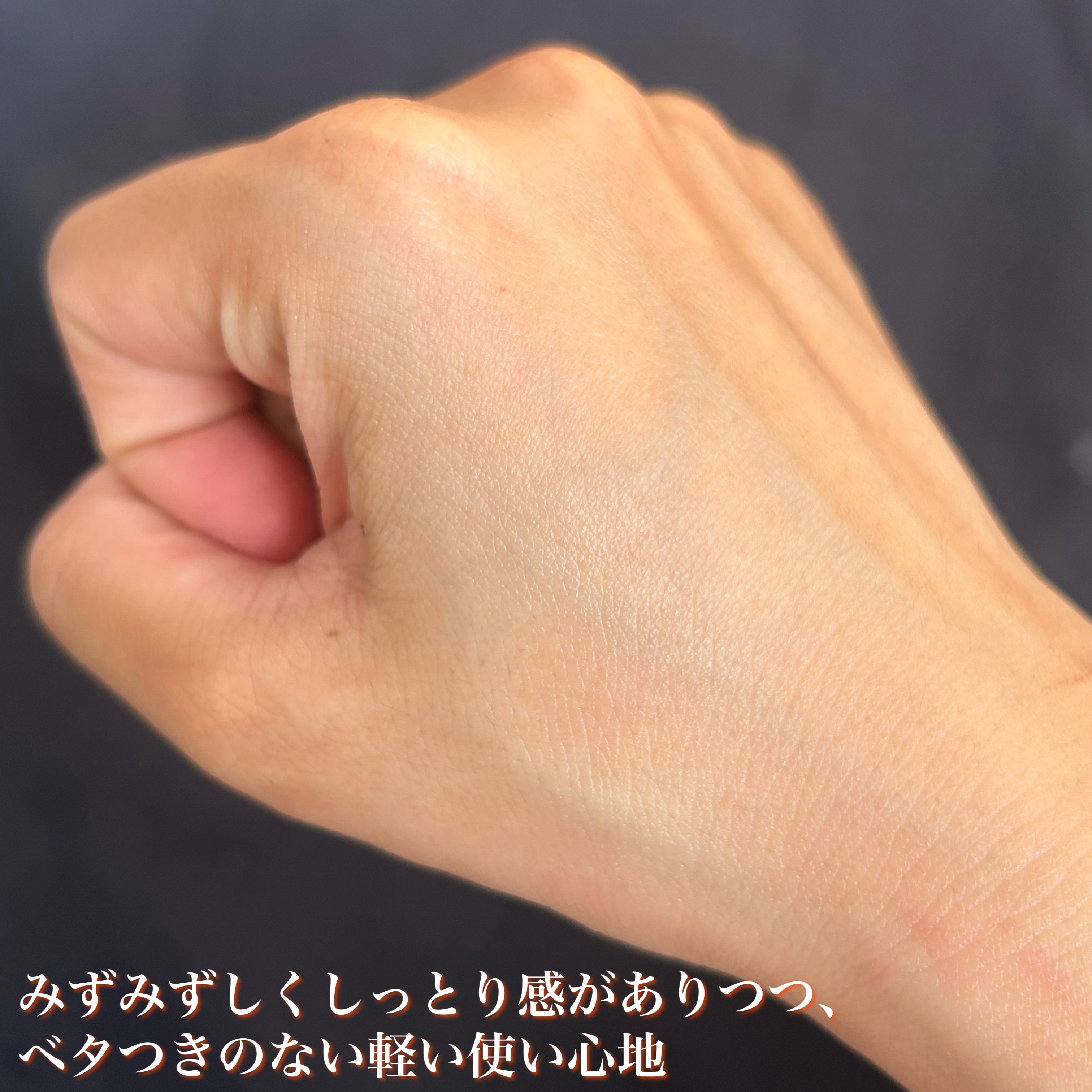 | スルスルっと伸びて、肌になじむとほんのりツヤ感を感じます。 後肌はさらり。 | 詳細を見る | ||