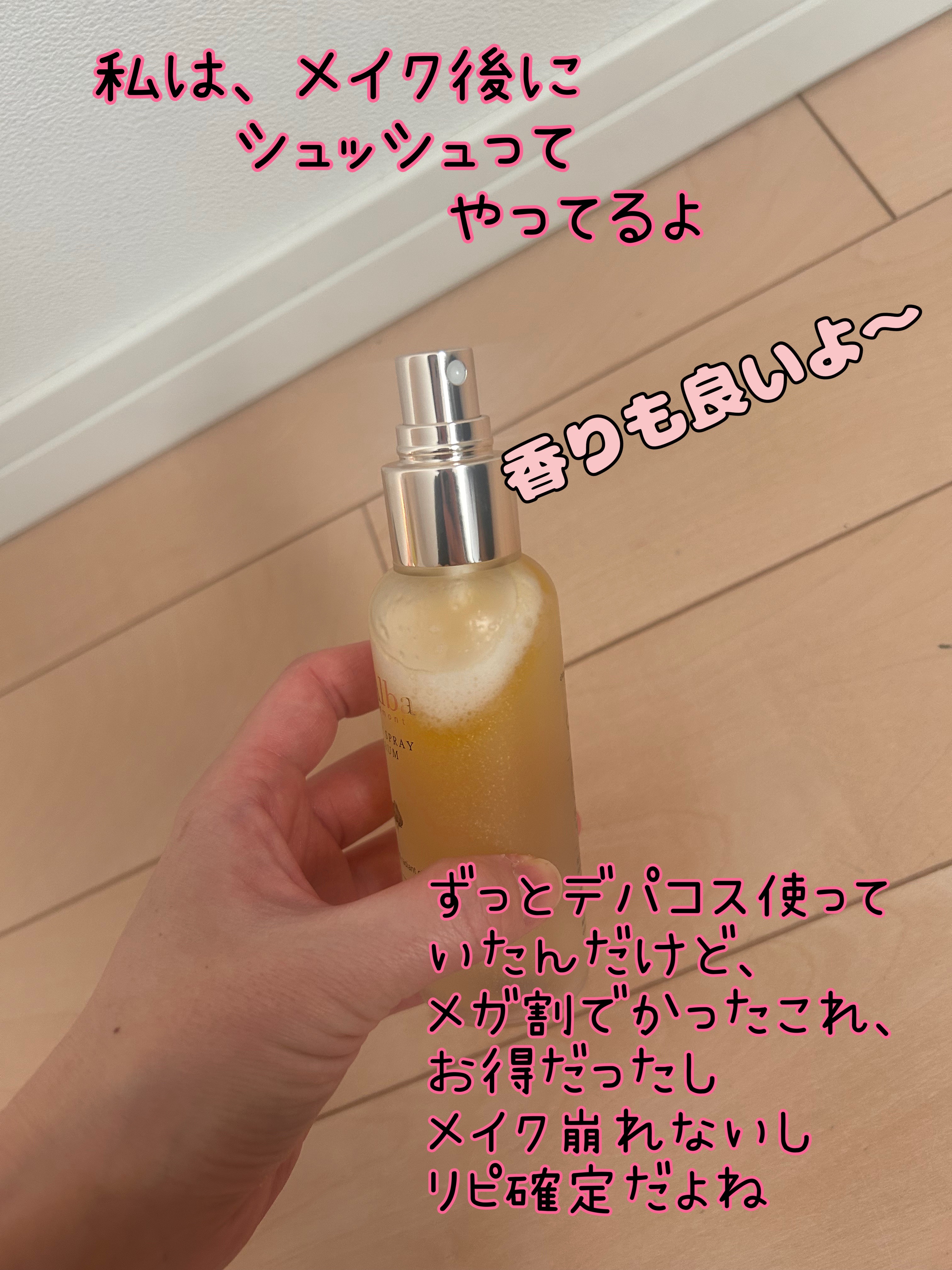 | メイクをした上にかけるミストです!粒子が細かいミストなので心地よく使えます。 | 詳細を見る | ||
