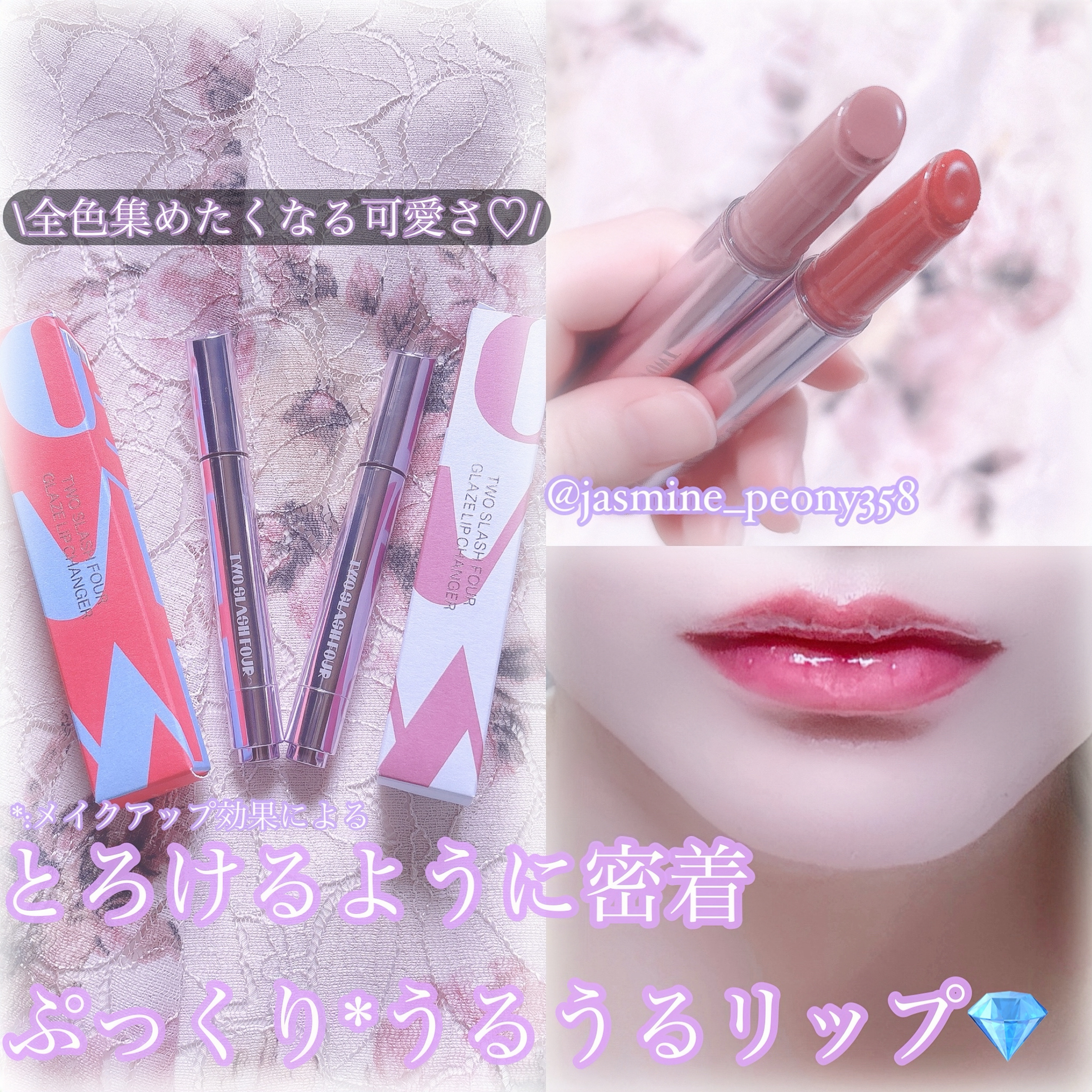TWOSLASHFOURGlazeLipChangerトゥースラッシュフォーグレイズリップチェンジャー✔︎NUREDレトロなレッドカラーに鮮やかなゴールドパールをミックス✨✔︎NUBLACKCHERRY派手さを抑えたダークトーンカラーにほのか...