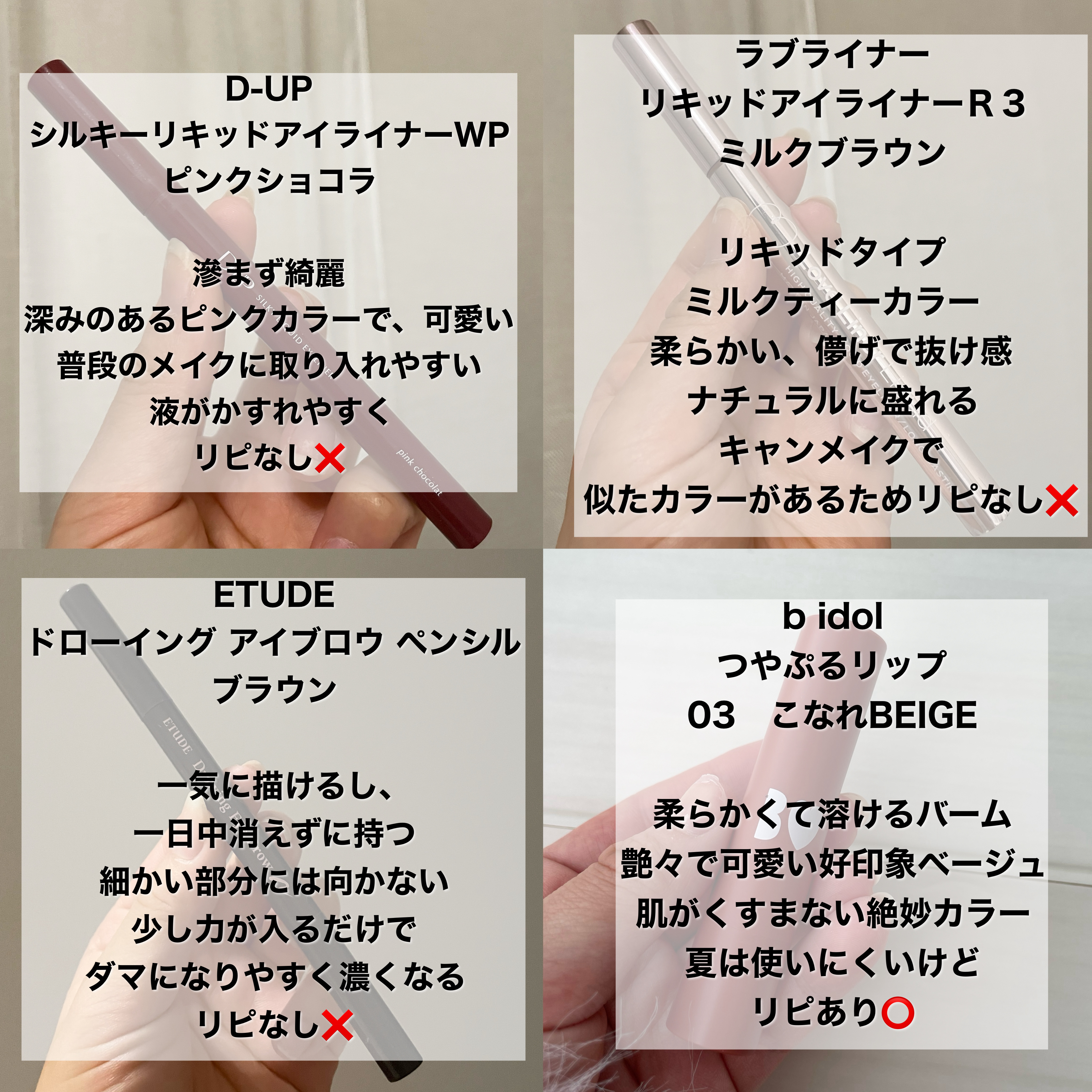 プチプラ眉マスカラ選手権!!!!私が今持っている眉マスカラ4種類を比較していきたいと思います!!ちなみに全てお湯落ちできるタイプです。仕上がり落ちにくさ使いやすさコスパというこの4点で評価をつけていきたいと思います!星5つが満点とさせていただ...