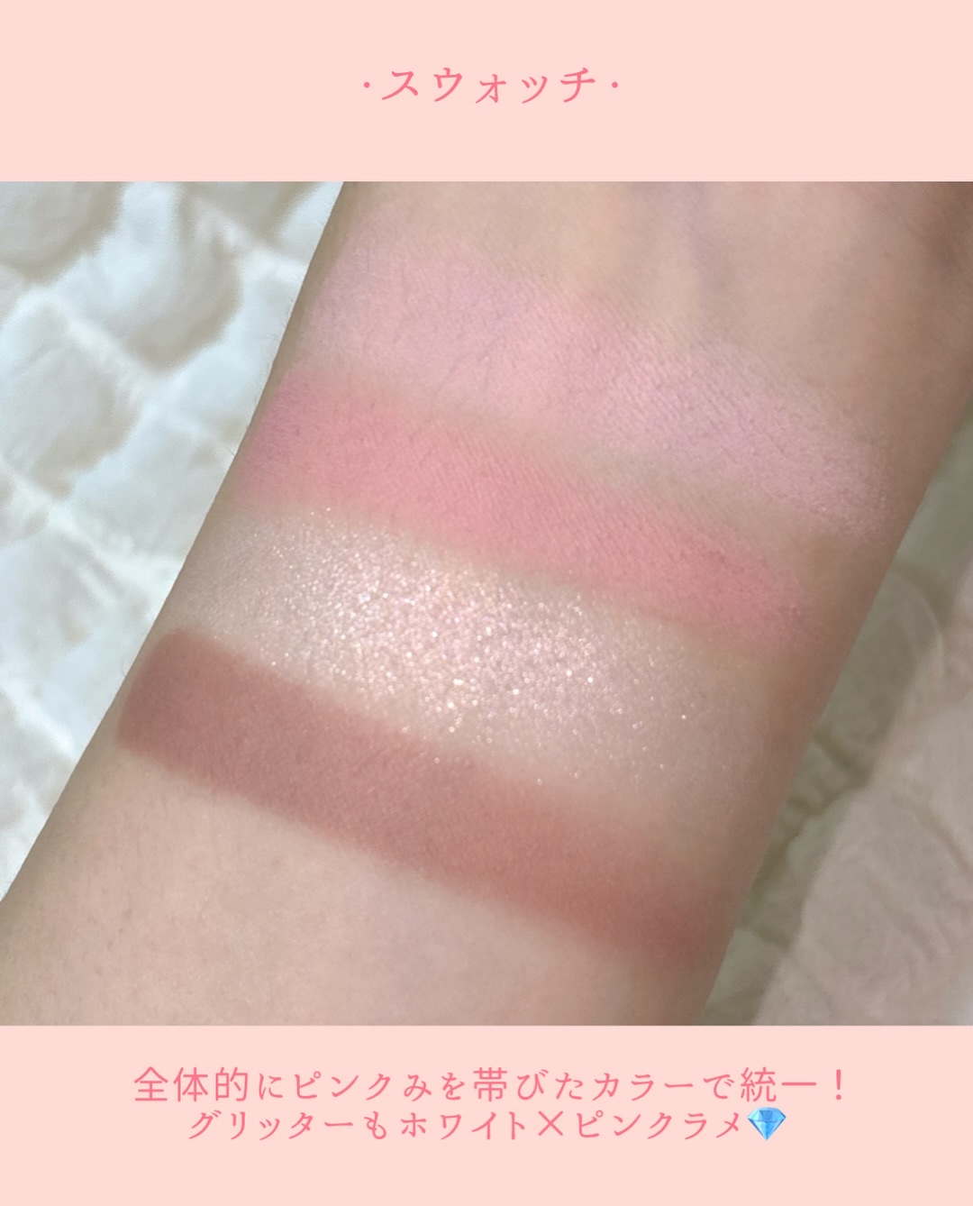 他のアイドルちゃんも愛用している子が多いんです🥹🫶🏻💗 ベージュ×シルバーなどの多色ラメで構成されたザックザクの高輝度ラメ! さっと塗るだけで一瞬で可愛い目元になれちゃうので私も気に入ってます🥰