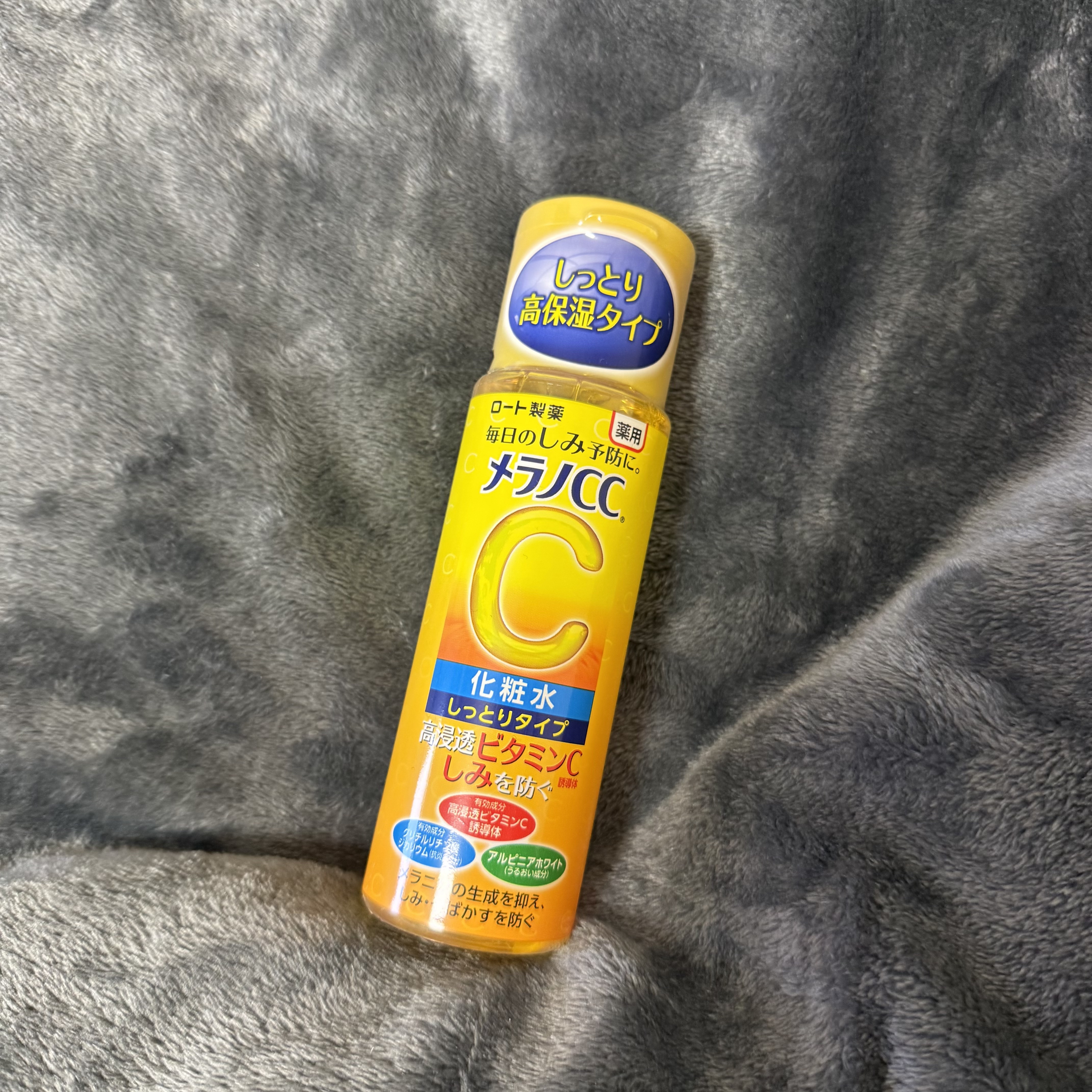 - 「メラノCC 薬用しみ対策 美白化粧水 しっとりタイプ」は、顔全体にうるおいを与えながら、しみ対策できる薬用美白化粧水。 美白有効成分の高浸透ビタミンC誘導体*1が角質層のすみずみまで浸透し、メラニンの生成を抑え、しみ・そばかすを防ぎ、透明感のある肌へと導きます。 また、抗炎症成分*2と3種のうるおい成分*3を配合。ニキビ痕が気になる肌にもうるおいを与え、肌を整えます。 さわやかな柑橘系の香りです。 *1:3-O-エチルアスコルビン酸 *2:グリチルリチン酸ジカリウム *3:アルピニアホワイト、レモンエキス、グレープフルーツエキス