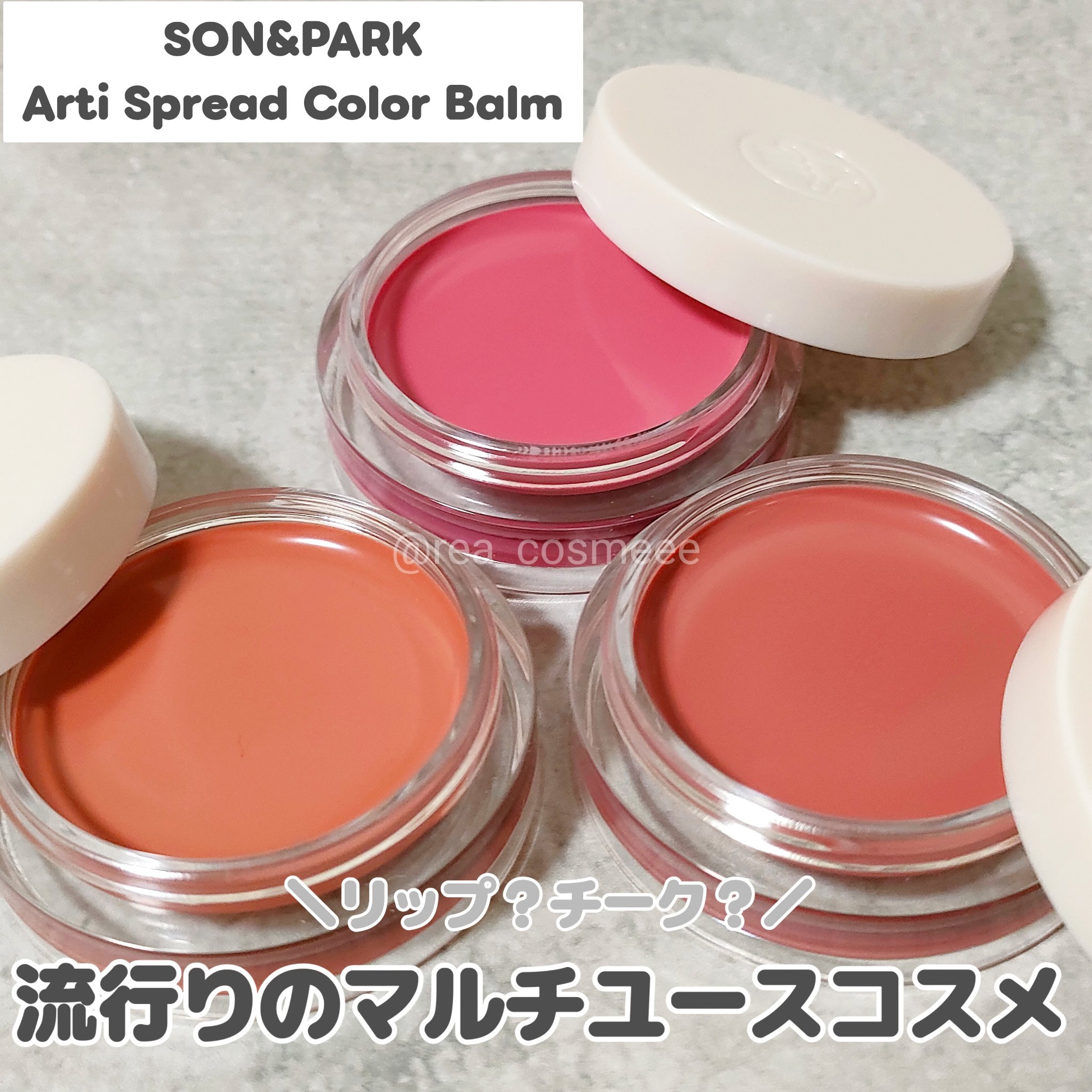 頬とリップに使えるマルチなカラーバーム🥰SON&PARKのArtiSpreadColorBalm3色をスウォッチ✨SON&PARKソンアンドパクArtiSpreadColorBalmアーティスプレッドカラーバーム01Sunset/02Peon...
