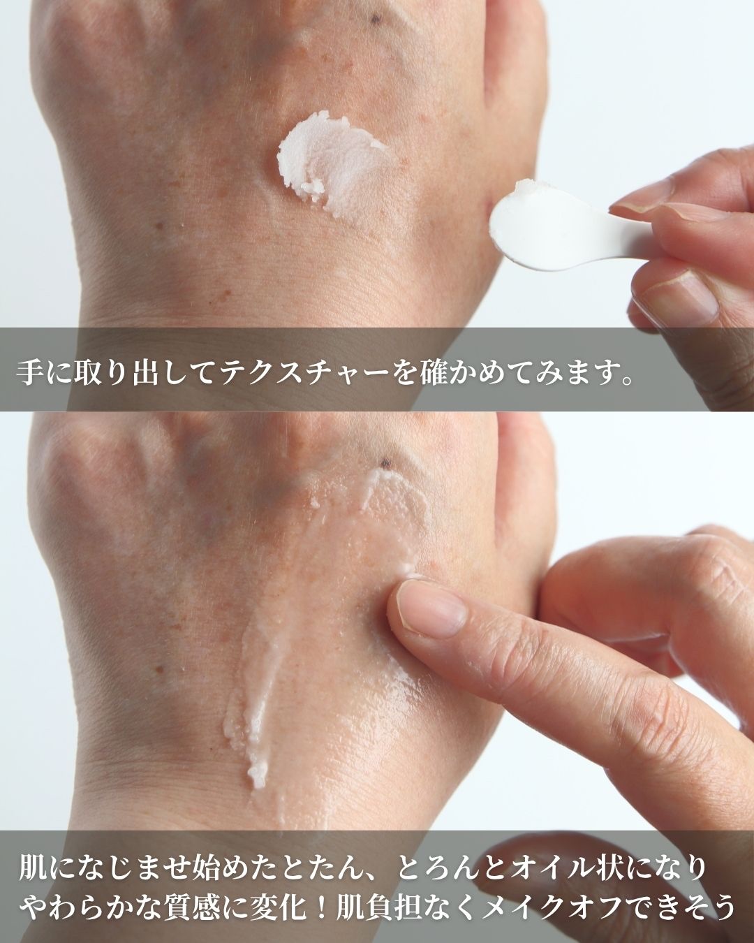 - 〈1つで5役 敏感肌のお客さまの声でつくったエイジングケア(※)クレンジング〉 これ1つで、クレンジング、洗顔、角質ケア、毛穴ケア、パックの5つの機能があり、お肌への摩擦を最小限に抑えて美肌ケアをすることができるクレンジングバームです。 使用後の“しっとり”にこだわった結果、洗う前より潤うクレンジングバームが完成しました。 (※)年齢に応じたお手入れのこと ・潤う秘密① あっという間にオイル状に変化する、とろけるバーム 体温ではなく、少しの力を加えることでオイル状に変化するよう調整されていますので、冷えた肌の上でもすぐにとろけます。摩擦を最小限に抑え、メーク汚れや皮脂汚れをすっきり落とすことができます。 ・潤う秘密② こだわりの植物由来の保湿成分配合 5種類のセラミド(※)やホホバ種子油、アーチチョーク葉エキスなど14種類の植物由来の保湿成分を配合し美肌の土台(※※)をサポート。内側から輝く素肌へ導きます。 (※)フィトステリルグルコシド/グルコシルセラミド、ユズ果実エキス、リンゴ果実エキス、パイナップル果実エキス、ヒマワリ種⼦エキス (※※)角質層