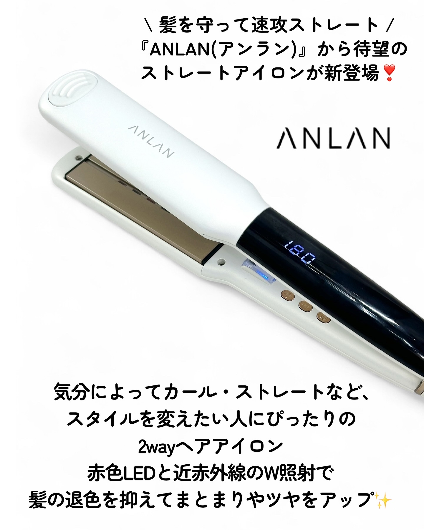 使うほど良い髪質に?!✨ANLANストレートヘアアイロン36mmの超ワイド加熱プレートのヘアアイロン!広範囲を一度にスタイリングできてタイパ良すぎる🤍熱を均一に伝えて、髪へのダメージを軽減してくれるよ!近赤外線&赤色LED搭載🤍髪への熱ダメー...