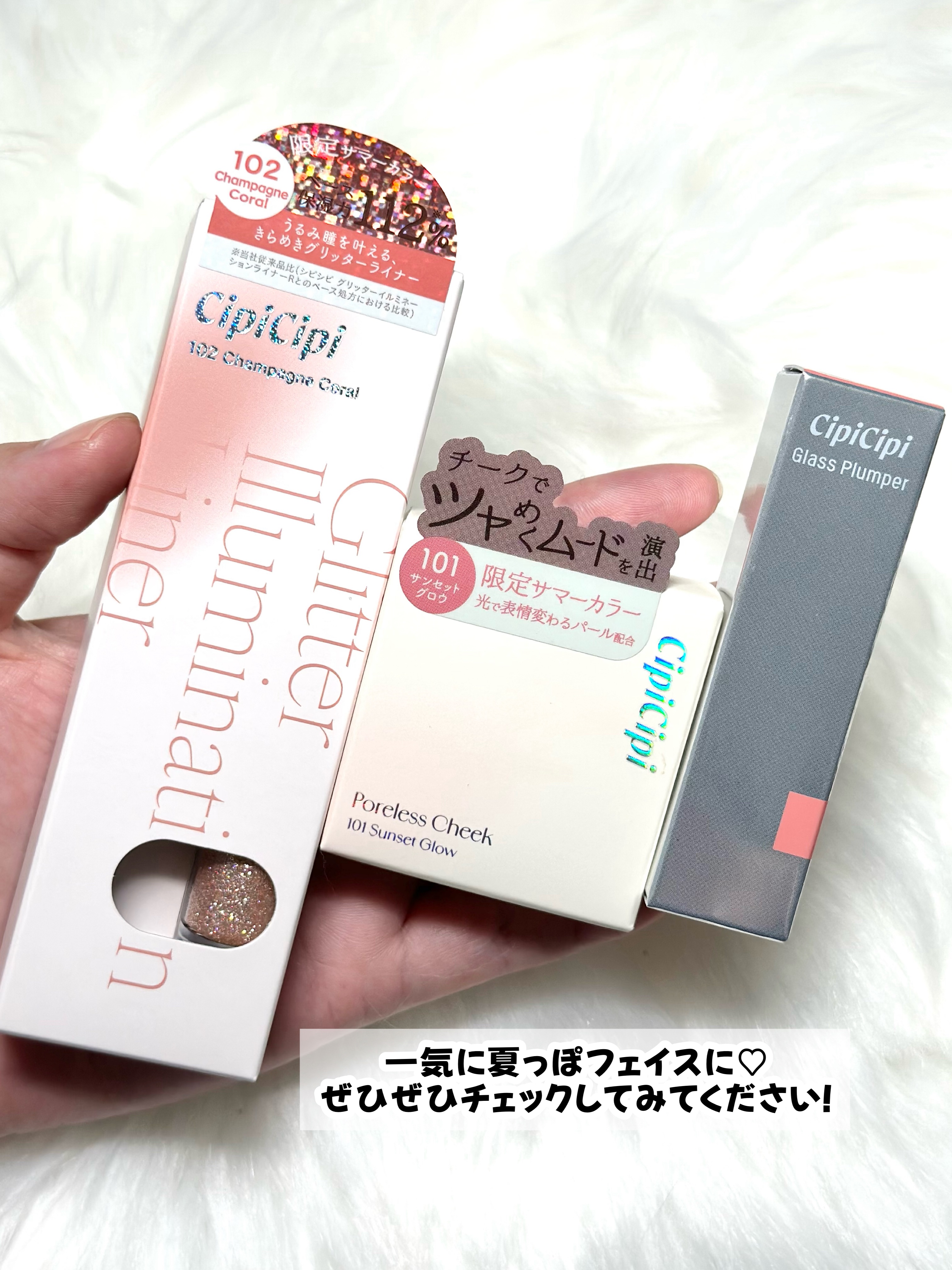 シピシピ夏コレ、ぜんぶイエベ春優勝すぎた🍑✨“じゅわっと火照り肌”がつくれる3アイテムでサンセットメイク完成♡🧡ポアレスチーク101→ピンクグレープフルーツみたいな血色感♡ゴールドラメがツヤっと光って毛穴も目立たないから、この夏毎日愛用中✨👁...