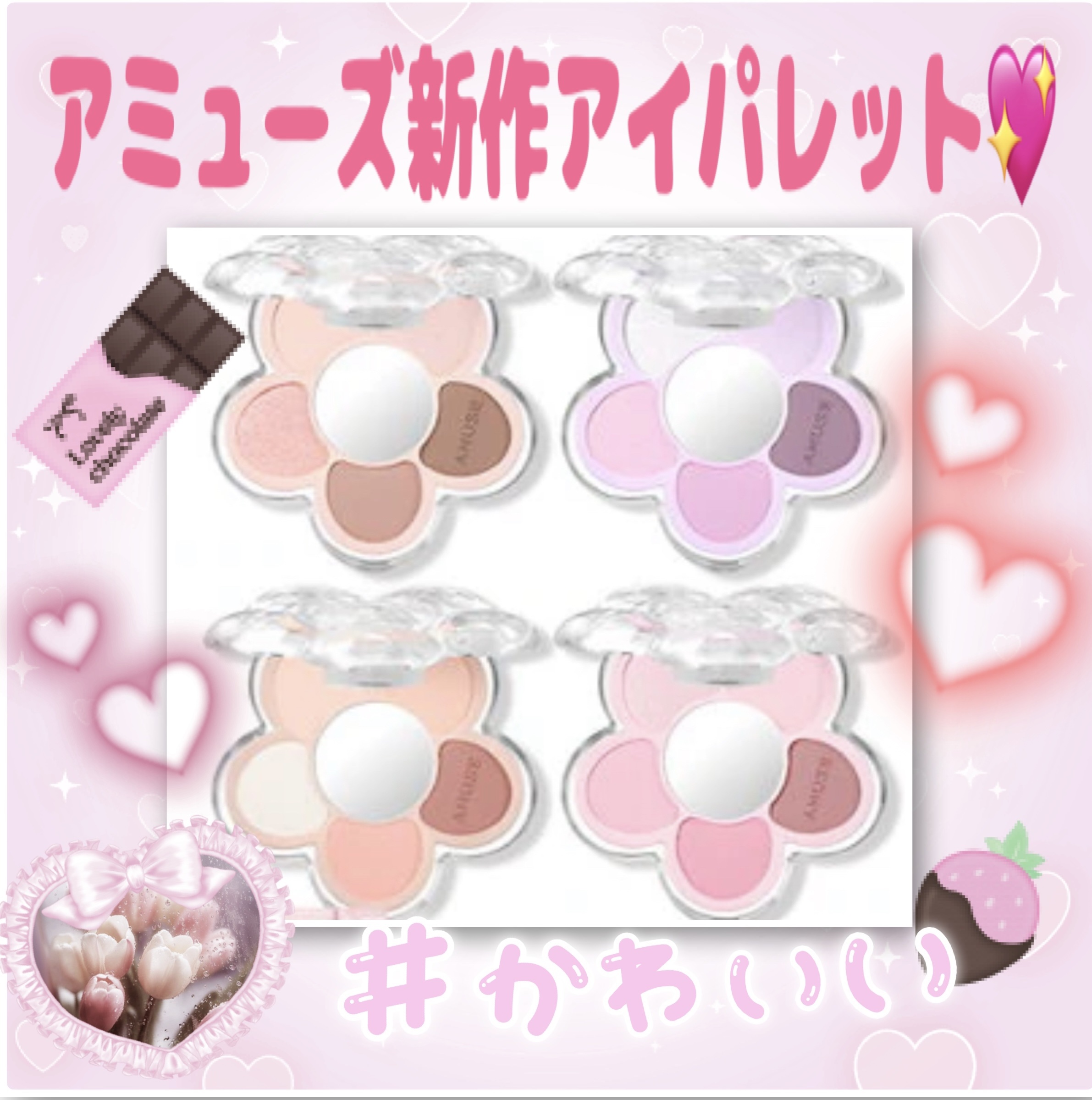 AMUSEから花の形の可愛いアイパレットがでました!!めっちゃ可愛い!しかも真ん中に鏡ついてるの最高すぎない!?01フローラピーチ#イエベ春02ローズリーナ#ブルベ夏03ベアベージュ#イエベ秋04ラベンダーブルーム#ブルベ冬ぜひゲットしてみて...