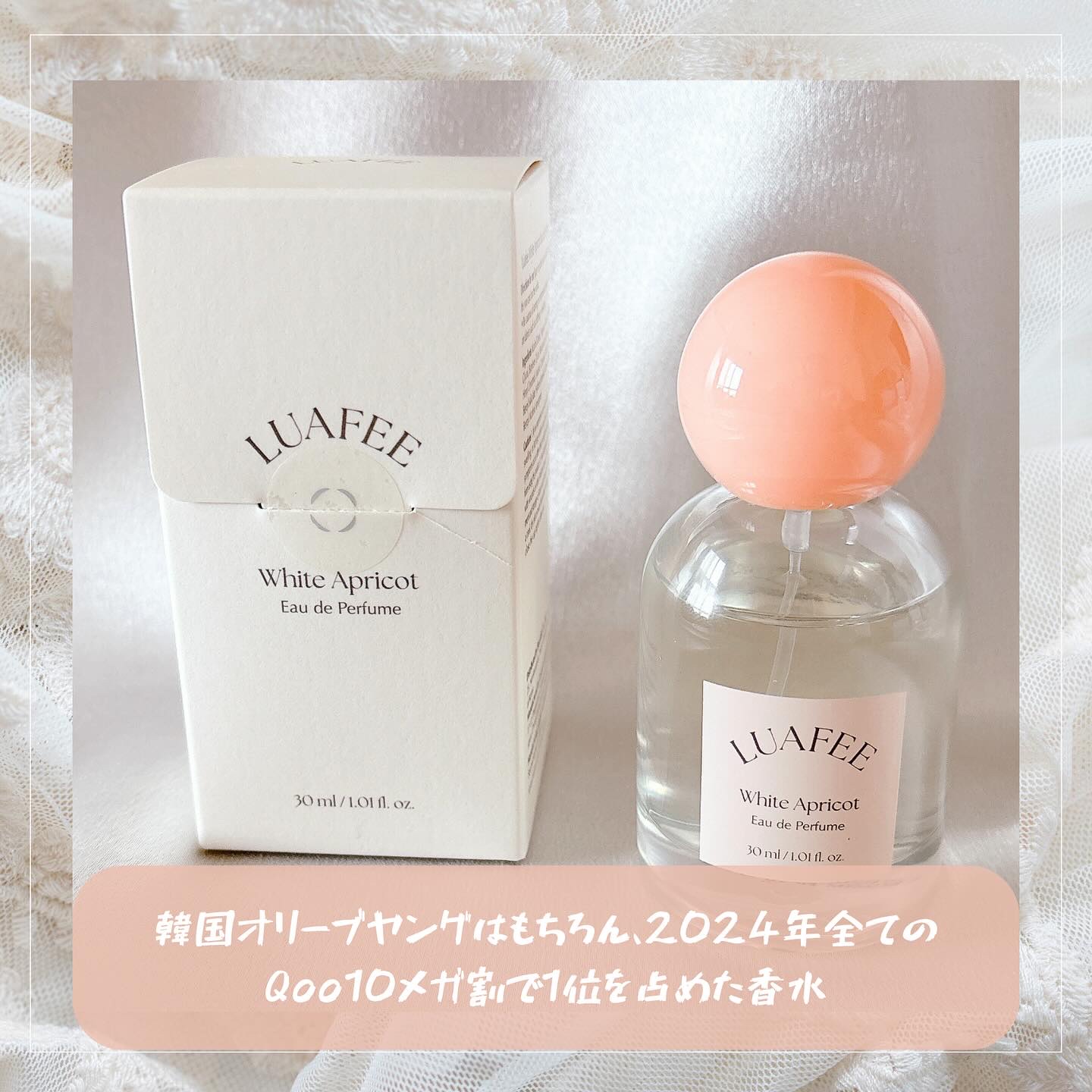 男性が期待する女性の香り?!万人受けする香調で、初めて香水を使う方にも使いやすいアイテム🌿.∘【LUAFEE】ホワイトアプリコットオードパルファム可愛さもありつつ女性らしい雰囲気を演出♡爽やかで上品なピーチムスクの香り🍑甘酸っぱさを感じるアプ...