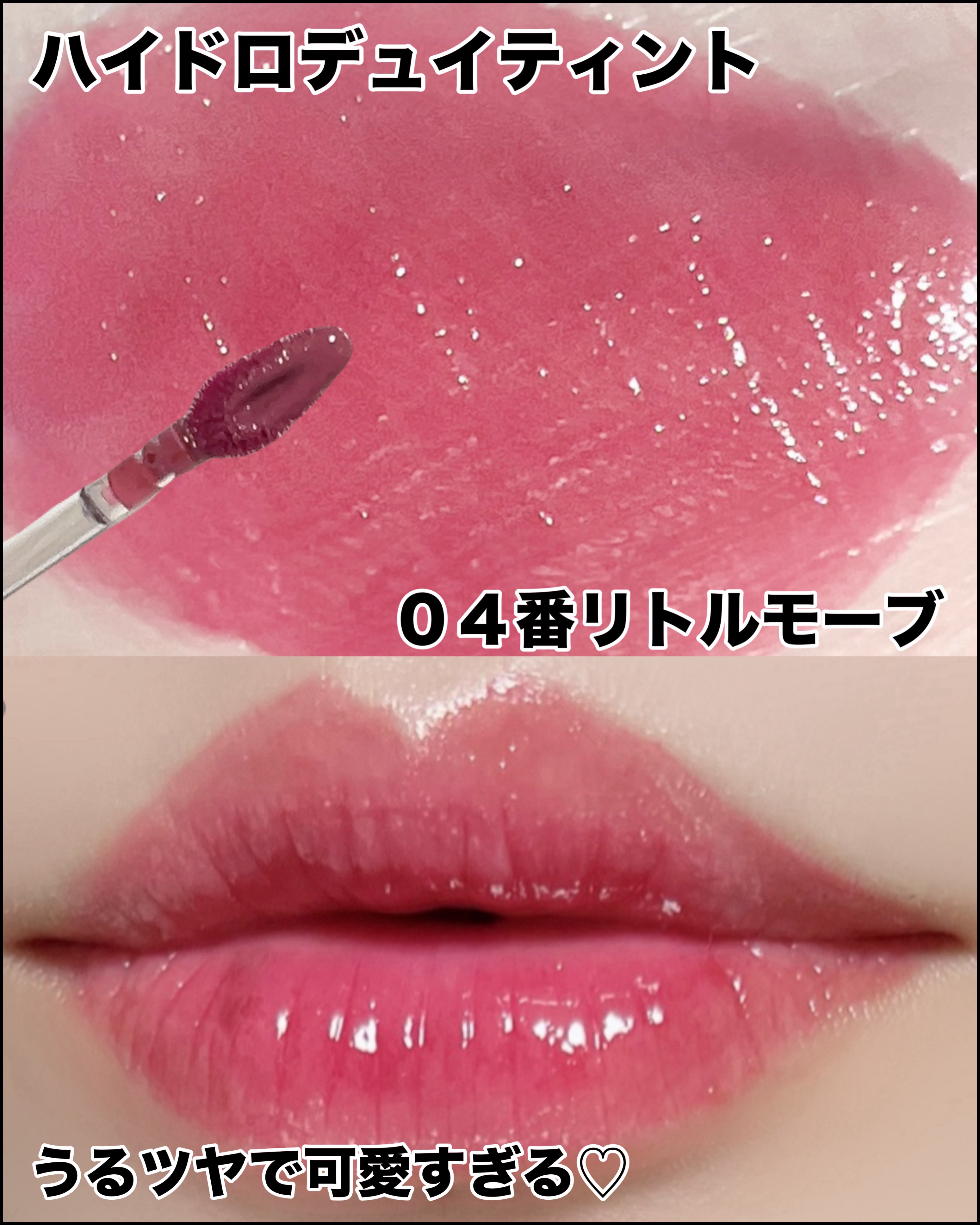 話題の韓国コスメ!✨️ ディアエーのティントとグリッター🩷 04のリトルモーブはミルキーなモープカラー&ピンクベージュカラーでブルベさんに使いやすいカラーだったよ🩵✨