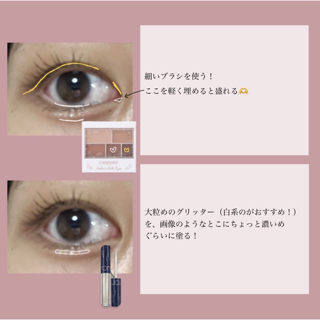 この方法、簡単なのにまじで盛れるから試してみて🫶 ノーマルカメラでも良い感じに映れる! キャンメイクの新作マットアイパレ、パーフェクトマルチアイズ 09買ったんだけど、まっじで可愛いの……