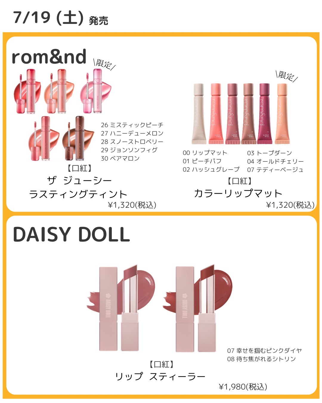 rom&nd ゼロマットリップスティック | 1,320円 |