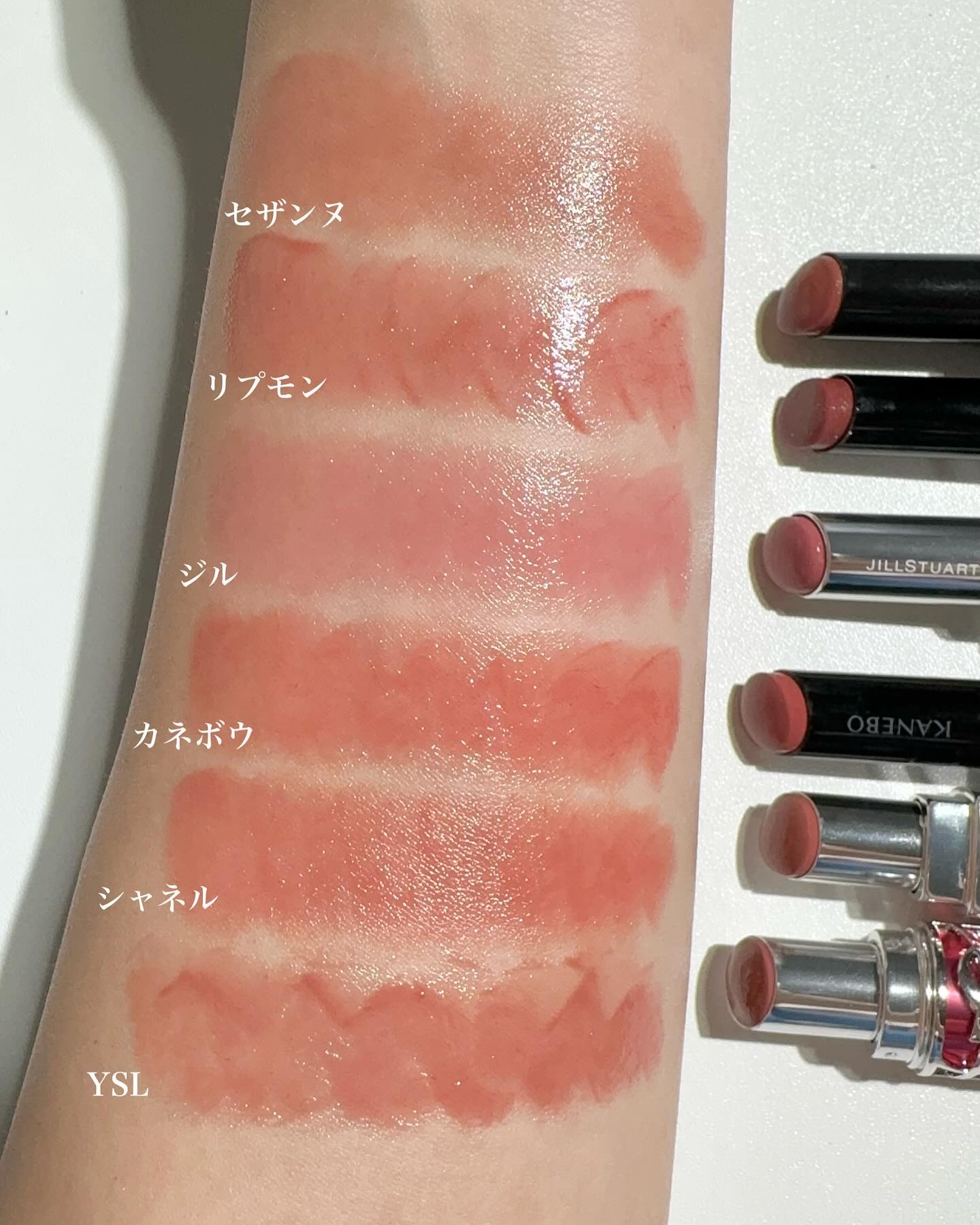 ねっちょりボリューム感あるテクスチャーだけど、ベタつきなく使いやすい。 ティントじゃない普通のグロスだから色もちは良くない。 発色ナチュラルだからこれだけでもいいけど、他のリップと合わせても可愛い!!