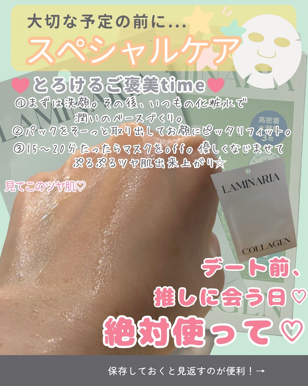 #PRShionLe(ションリ)@shionle_jp\\糸引くマスク🤍//ラミナリアコラーゲンマスクとろみのあるエッセンスで肌が潤う✨シートは薄めでぴたっと肌に密着するよ!しっかりと保湿してくれるので、乾燥で揺らぎやすい季節はもちろん、大切...