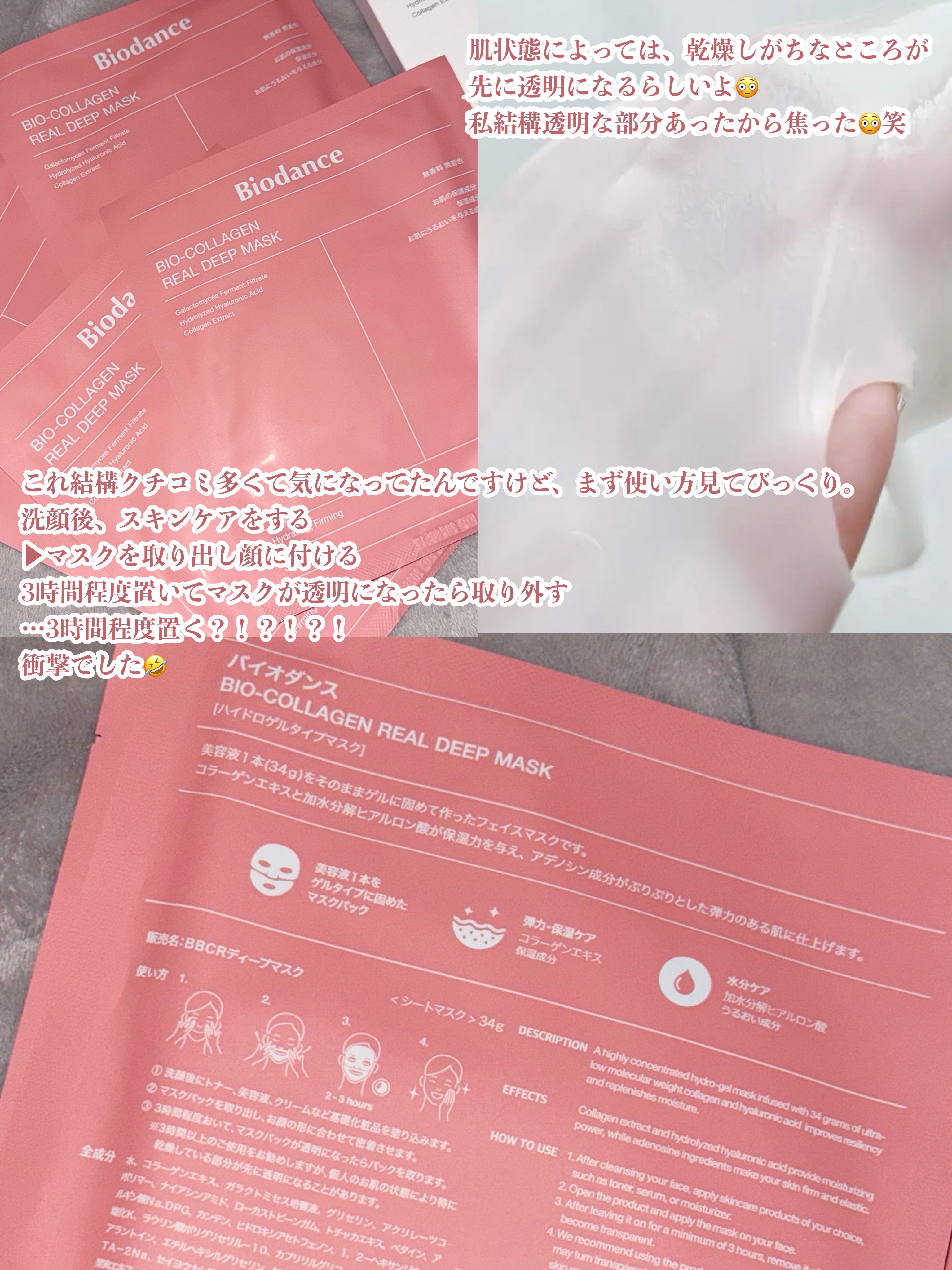 🌿🌿🌿☑︎Biodanceバイオコラーゲンリアルディープマスク୨୧୨୧リアルディープマスクシリーズの中で「毛穴・弾力ケア」をしたい方におすすめ🌟シートは上下に分かれており剥がしやすいように透明なフィルムが!上下のシートなのでフェイスラインにフ...