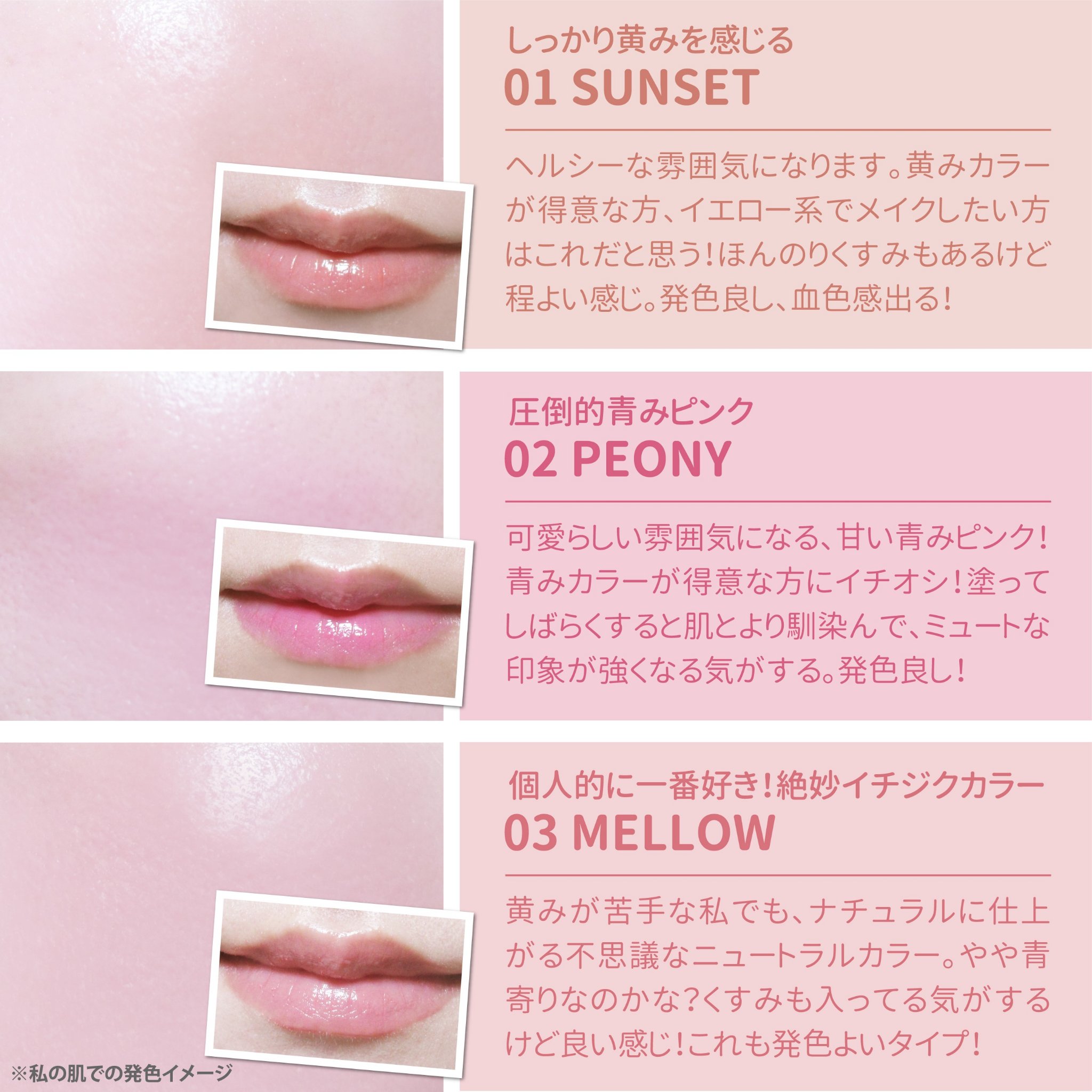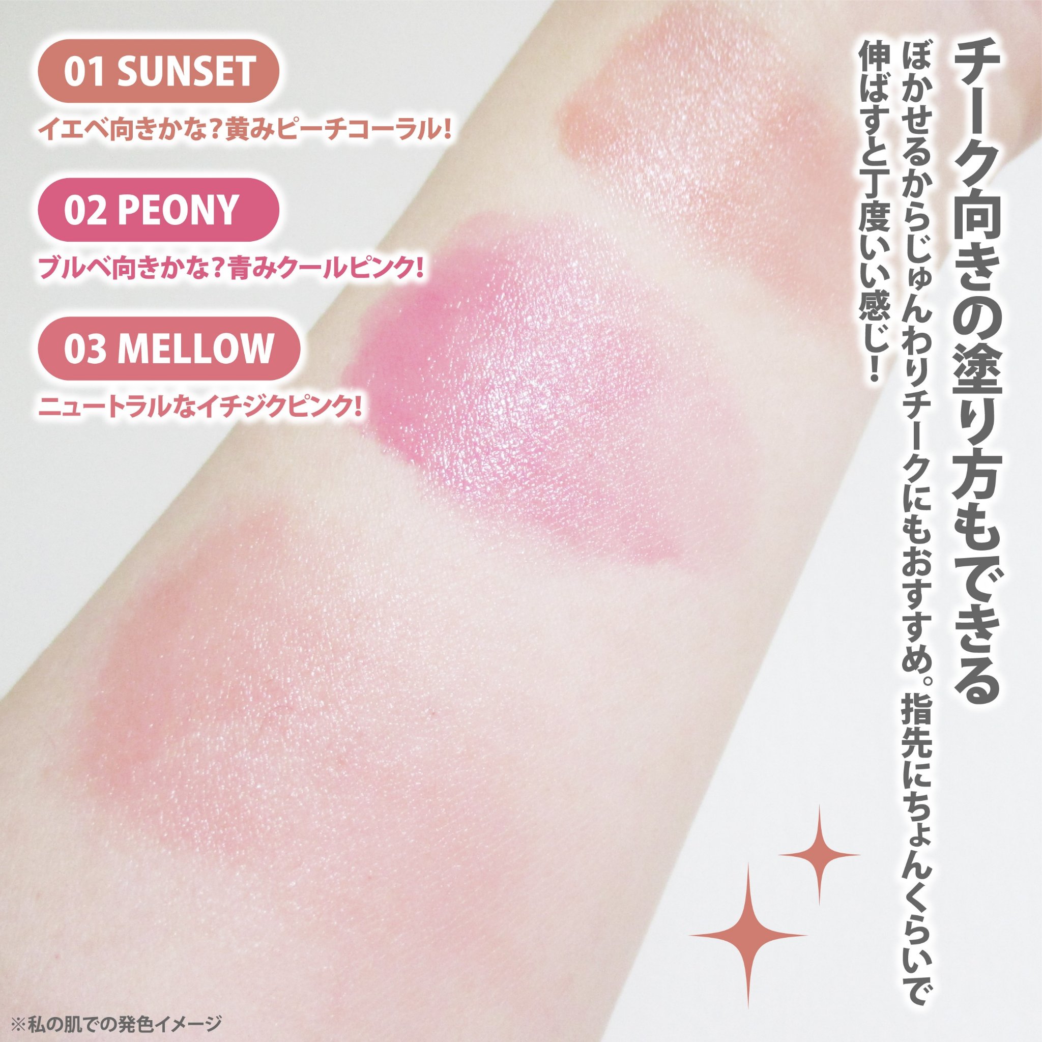 - 唇や頬など、生き生きとした輝きが必要なところ、どこにでも澄んで潤いを与えるマルチユースのグロスバームです。体温でやさしく溶けて潤いを与え、ベタつきなしで仕上げる光沢フィニッシュです。