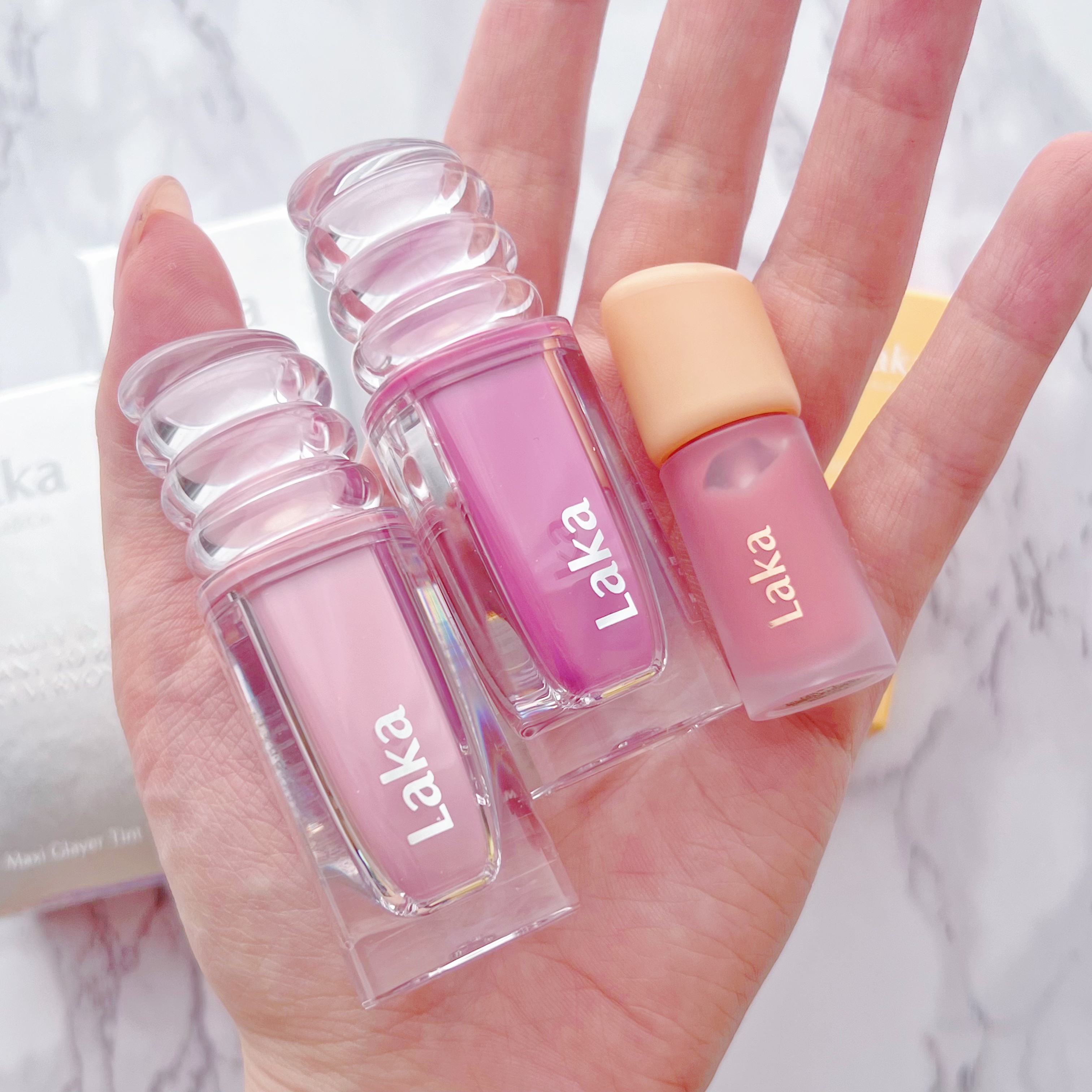 ぷるぷるリップティント💋はLaKaおすすめ💕唇本来の血色と自然と馴染む半透明カラーが勢揃いパケもかわいい😍軽めのテクスチャーでぷるぷるガラスのツヤ感🫧Lakaマキシグレイヤーティント#608Whisper青みが一滴🫧ブルベ寄りかなと思...