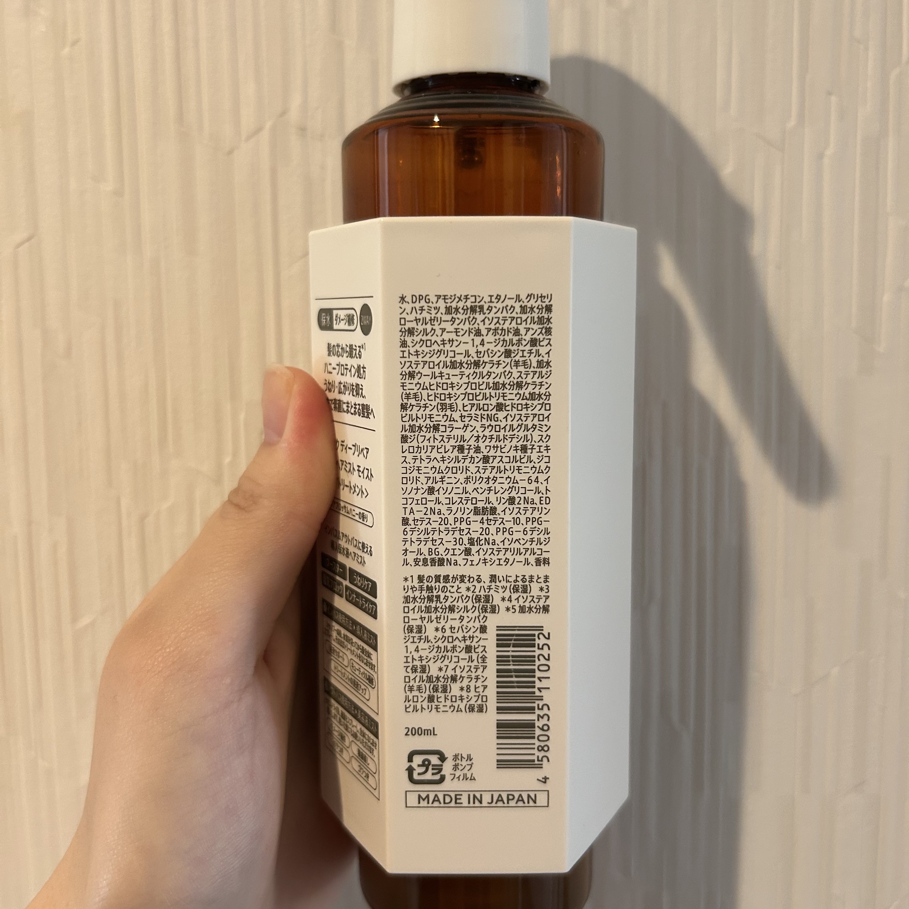 - 毛先まで素直にまとまる蜜髪へと導く「ハニープロテイン処方(保湿)」の2WAY導入保水液ヘアミスト。 髪内部の保水力をサポートするオーガニックマヌカハニー*1や、髪の芯から集中補修する3種のプロテイン*2など、髪の芯から鍛える*3成分を厳選して配合。 インバスとアウトバスの2WAYでマルチに使えます。シャンプーとトリートメントの間に使う導入液ミストとして使うことで、次に使うトリートメントの浸透をサポート。 うねり、湿気、髪の広がりが気になるときの美容液ミストとして、アウトバスケアにも使えます。アクアブロッサムハニーの香り *1 ハチミツ(保湿) *2 加水分解乳タンパク、イソステアロイル加水分解シルク、加水分解ローヤルゼリータンパク(全て保湿) *3 髪の質感が変わる、潤いによるまとまりや手触りのこと
