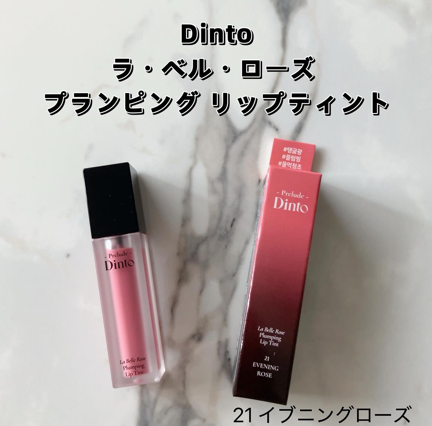.Dintoさまからいただきました✨ダイソーとDintoのコラボ商品プレリュード・ディントフェアリーダストルースパウダー01MilkyFairy粒子が細かくて、サラサラ仕上がり◎ラ・ベル・ローズプランピングリップティント21EveningEm...