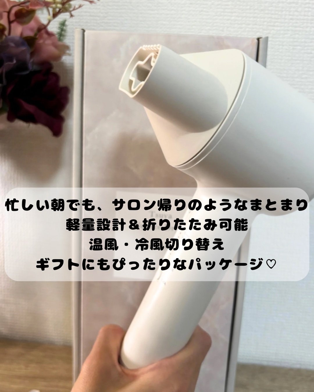 フェスティノさまからいただきました!好きなタイミングで髪に近づけたり離したりするだけで髪との距離を感知して自動で温冷切り替えしてくれるドライヤー😳フェスティノツヤニュアンスドライヤー全2色・29,700円(税込)お洒落なサンドベージュとホワイ...