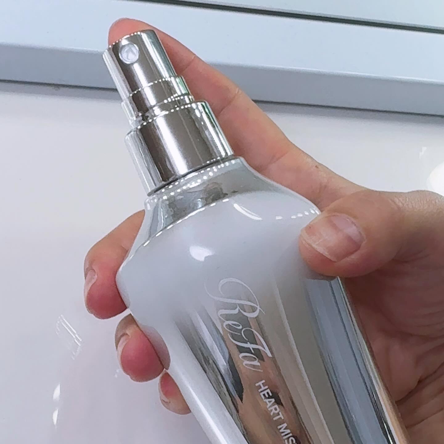 ReFaリファハートミストベースをご提供いただきました♡可愛いハートデザイン🤍朝のスタイリング前のベースに髪のうねりをケア出来るミストです。雨の日のクセも出にくいそう!使ってみた感じでは、くるくるドライヤー前にスプレーしてブローしたところ充分...