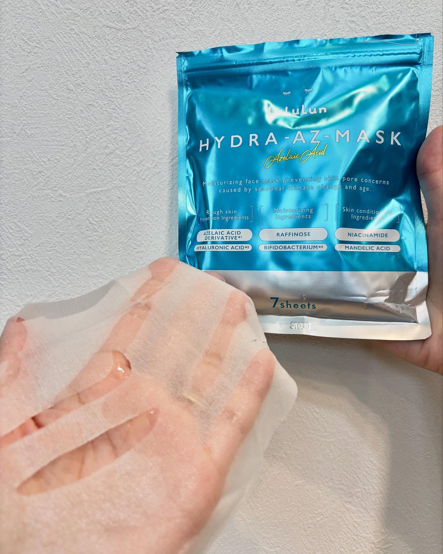 話題のアゼライン酸誘導体配合のフェイスマスクです🎶 このマスクお気に入りで今回で3袋目だよ~😉 肌あれ・ニキビ・毛穴ケアや化粧水代わりにうるおいケアも🩵 サラサラのエッセンスがたっぷりでマスクが肌に密着しやすいです。
