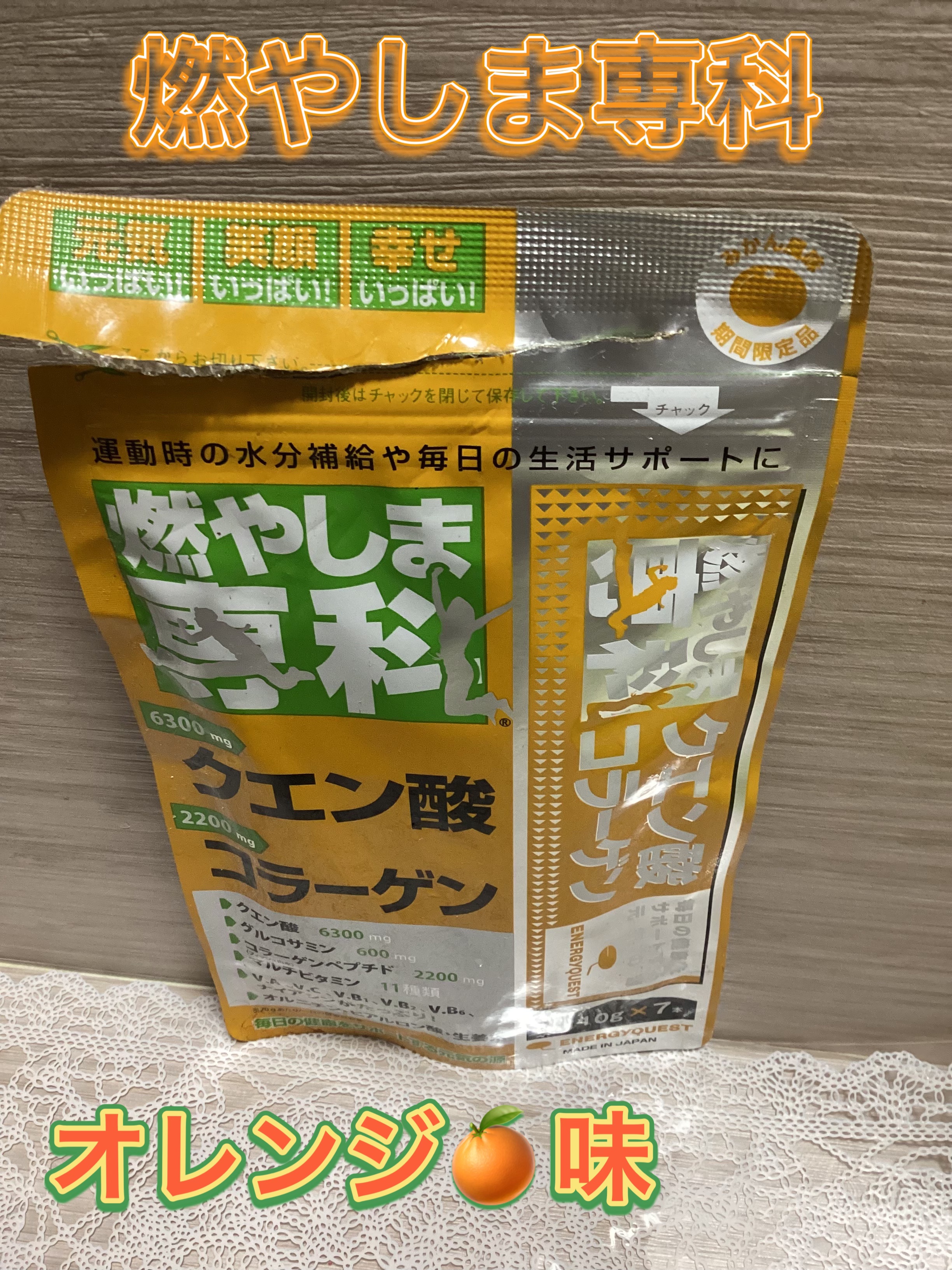 疲労回復効果のあるクエン酸や 汗で失いがちなビタミン、ミネラルなど 27種類もの栄養素が配合されています。 燃やしま専科はサラッとした粉末タイプ。 水にサッと溶かすだけで、 スポーツドリンクができちゃいます◎ わたしは「レモン味」を飲んでいますが 味はとっても爽やかで、 甘すぎずスッキリとした味わい🍋 運動する前に飲むと 汗のかき方が違う気がします◎ 栄養補給や疲労回復にもいいので 家事をする前にも飲んでるよ🥛👌🏻 個人的にうれしかったのが コラーゲンも入っていたこと!