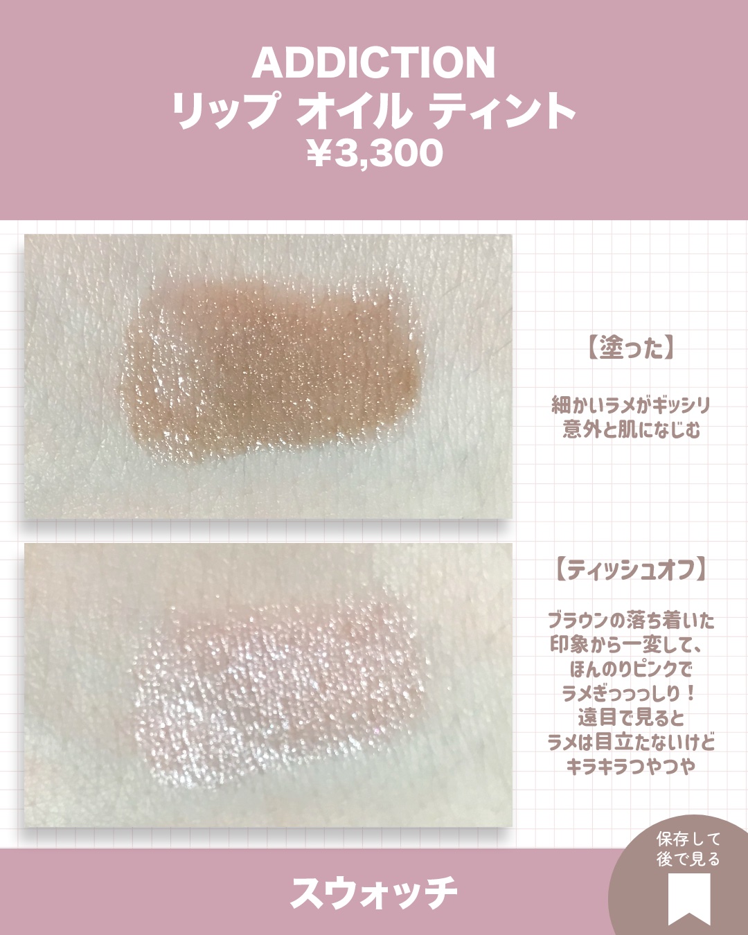 | リップティントランキング第87位 | 細かいゴールドのラメのリップオイルが、唇に塗ると次第にピンクになっていきます💕 | 詳細を見る |