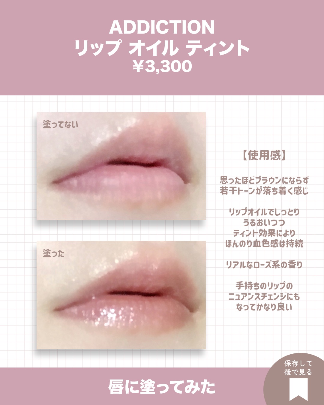 単体で見ると全然想像つかないけど唇に塗るとすごい大人可愛いカラーだね😳!! 似合ってる!!!