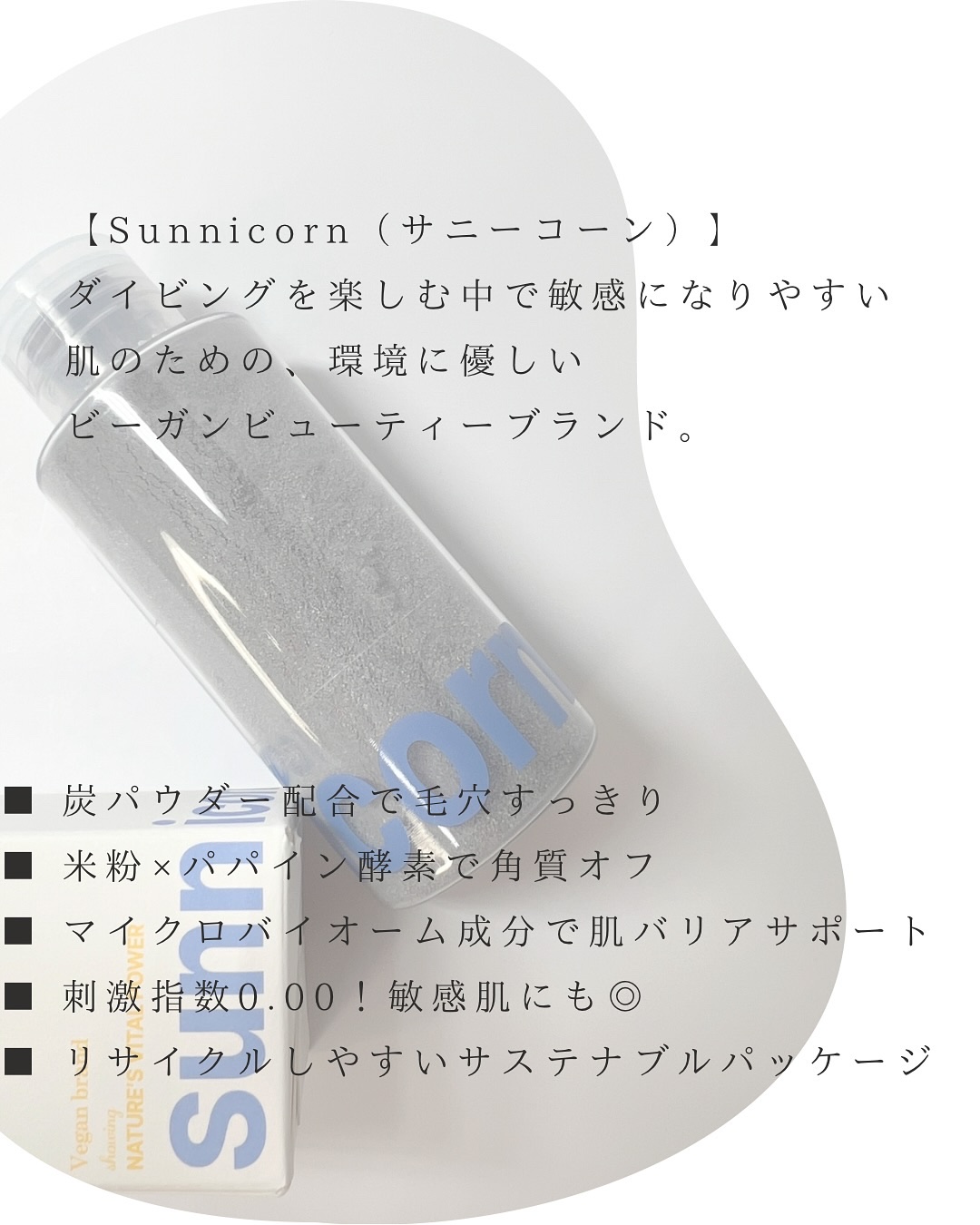 角質オフ+毛穴ケア+洗顔が1つで完了しちゃう優れものを見つけたよそれがSunnicorn(サニーコーン)のマイクロバイオーム酵素洗顔パウダーつるんとなめらかメイクのりもばっちりな肌に導きたいならこれ使ってみて炭パウダー配合で黒色のサラサラパウ...