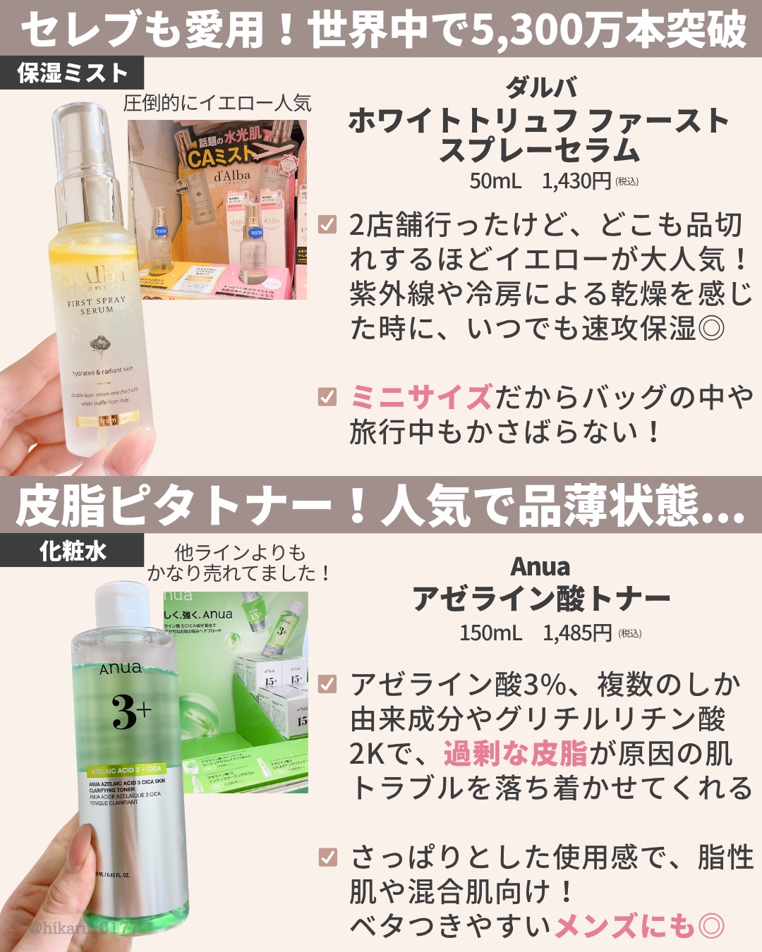 VTやDr.G、ネイリパのセラム、トリデンは店頭でも大人気でしたよ💓 Qoo10や楽天と価格が変わらなかったり、さらに安かったものも見つけました✨ 実際に手に取って購入できるので、ぜひ店舗で見てみてくださいね👀💕
